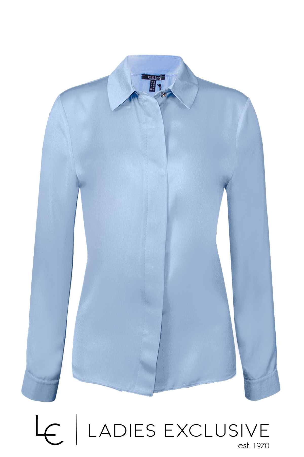 ESTEL Πουκάμισο σιέλ σατέν με πέτο γιακά και κρυφή πατιλέτα.