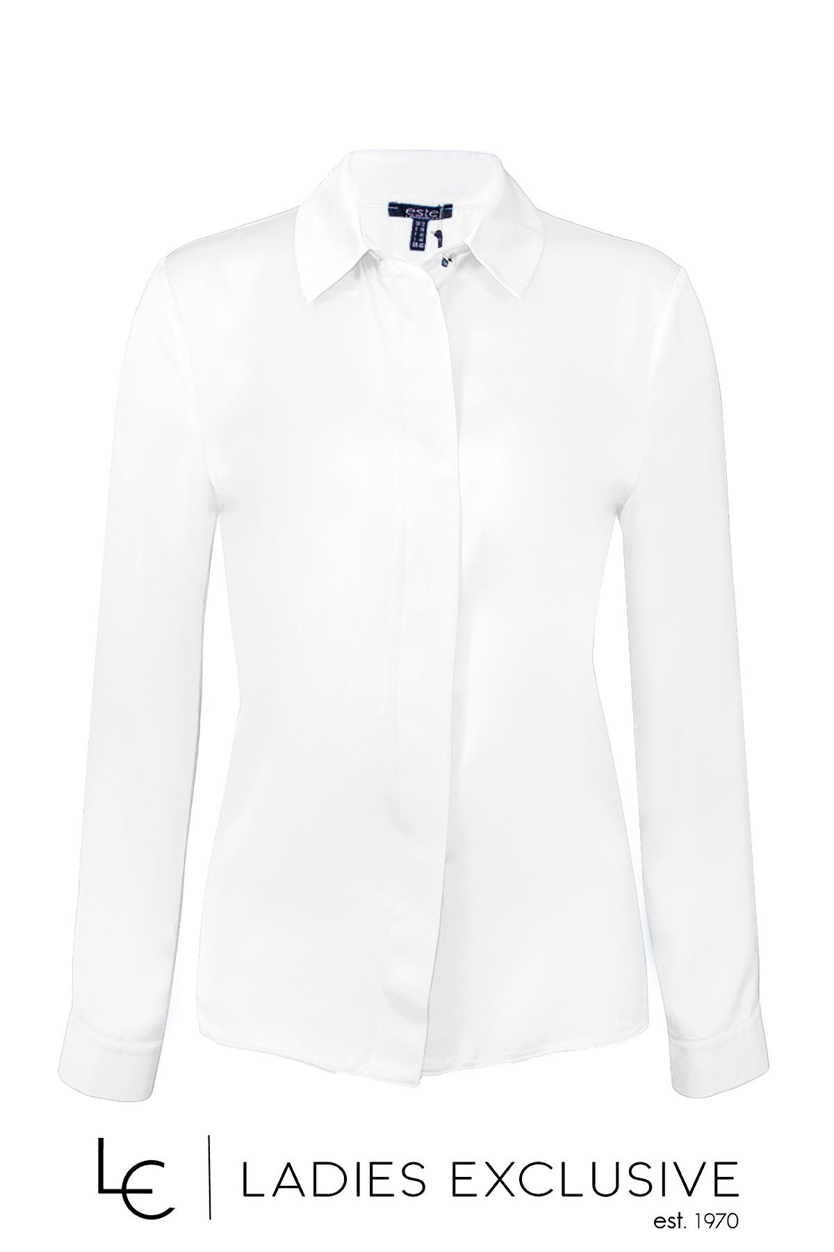 ESTEL Πουκάμισο λευκό σατέν με πέτο γιακά και κρυφή πατιλέτα.