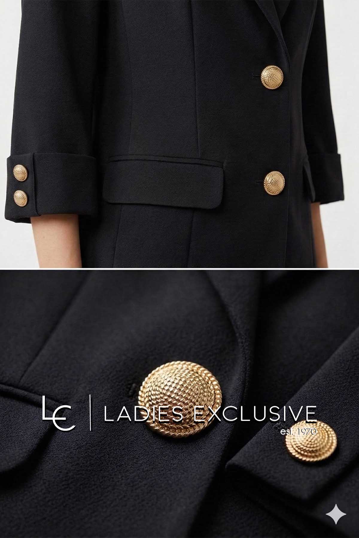 FIBES Σακάκι μαύρο κρεπ με μανίκι 3/4 και τσέπες με καπάκια. Γίνεται σετ με το παντελόνι με κωδικό 04-8102.01.