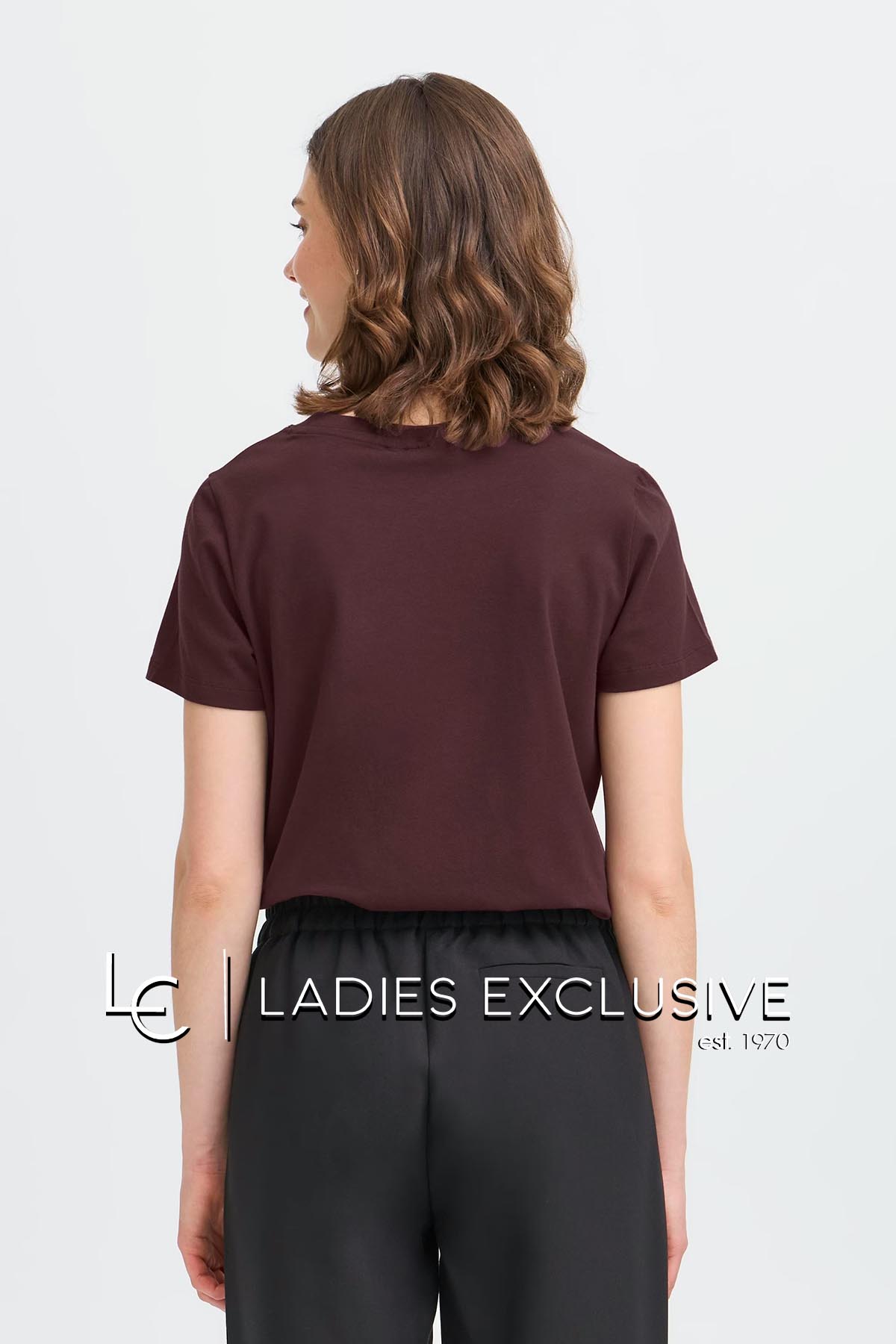 FRANSA Μπλούζα γκρενά κοντομάνικη μονόχρωμη με στρογγυλή λαιμόκοψη.