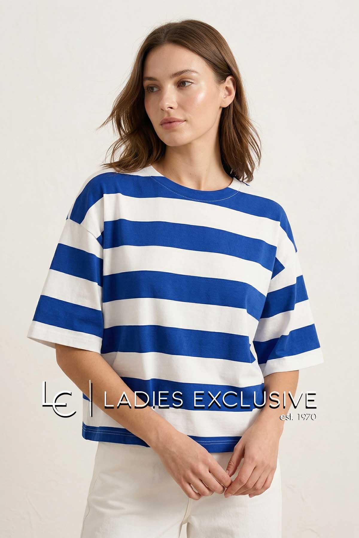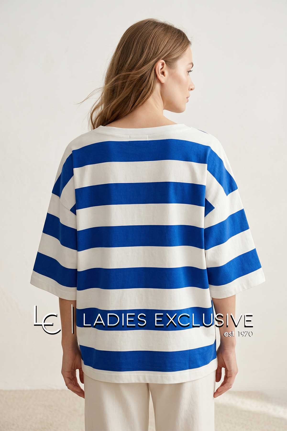 FRANSA Μπλούζα ριγέ μπλε με λευκό με μανίκι 3/4 και μεγάλο χαμόγελο.