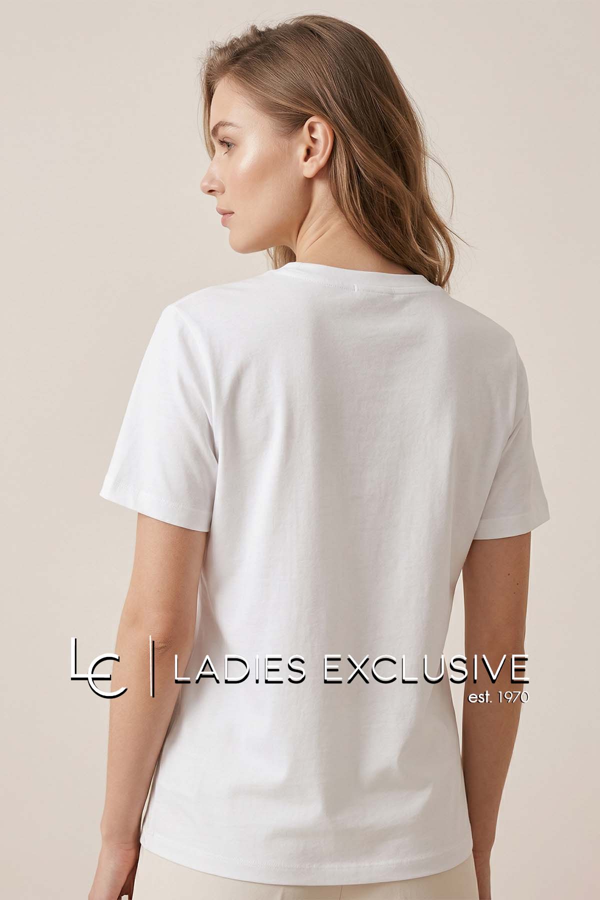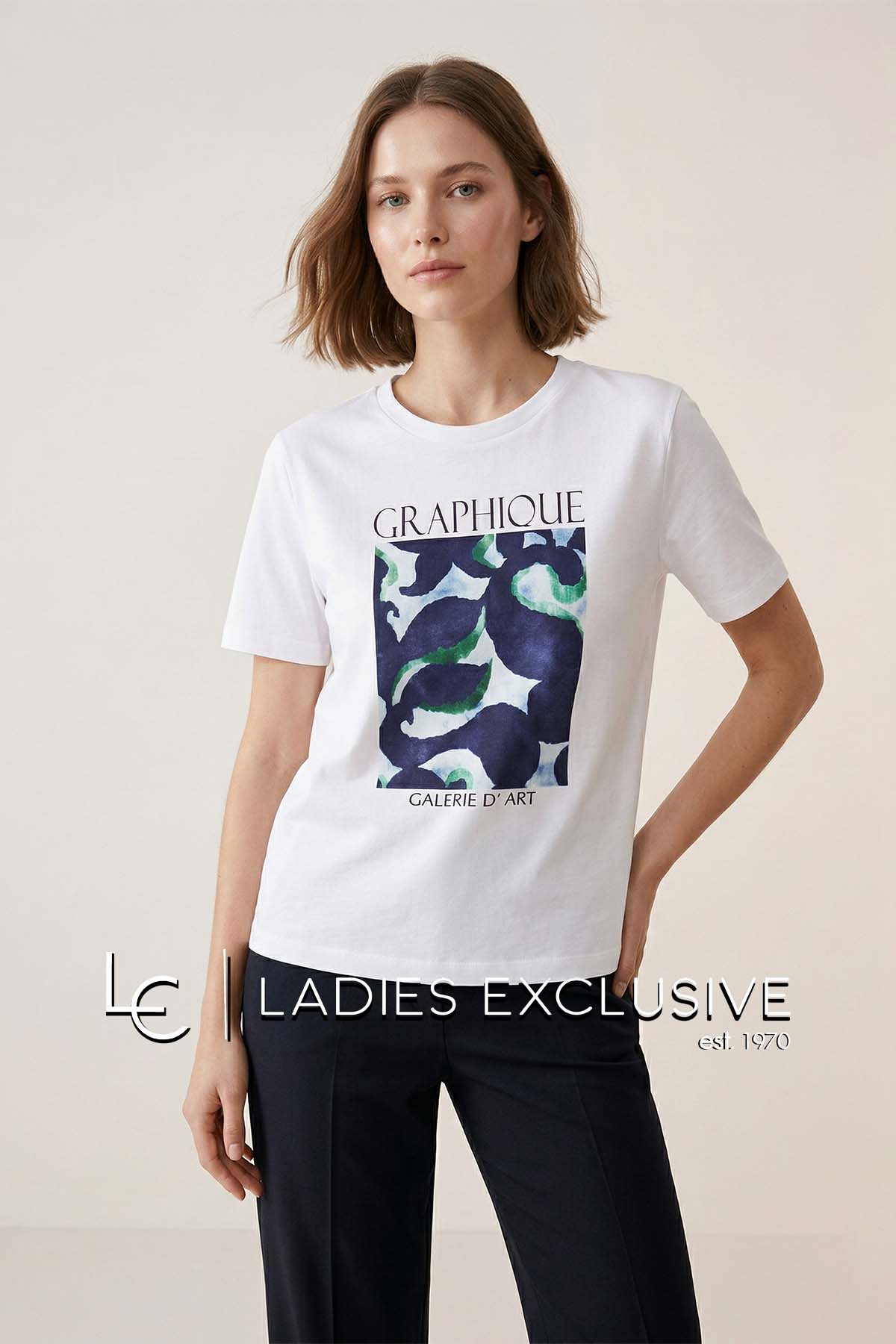 FRANSA Μπλούζα t-shirt λευκή με μπλε στάμπα 'Graphique'.