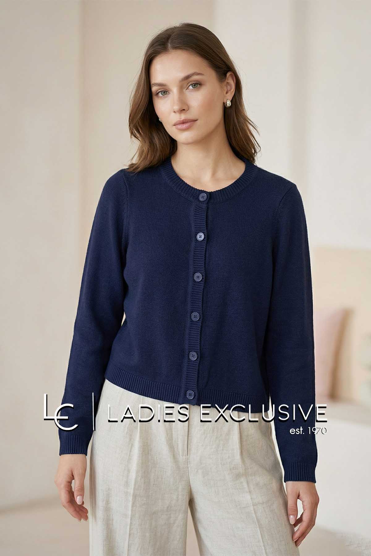 FRANSA Ζακέτα μπλε βαμβακερή με κουμπιά.