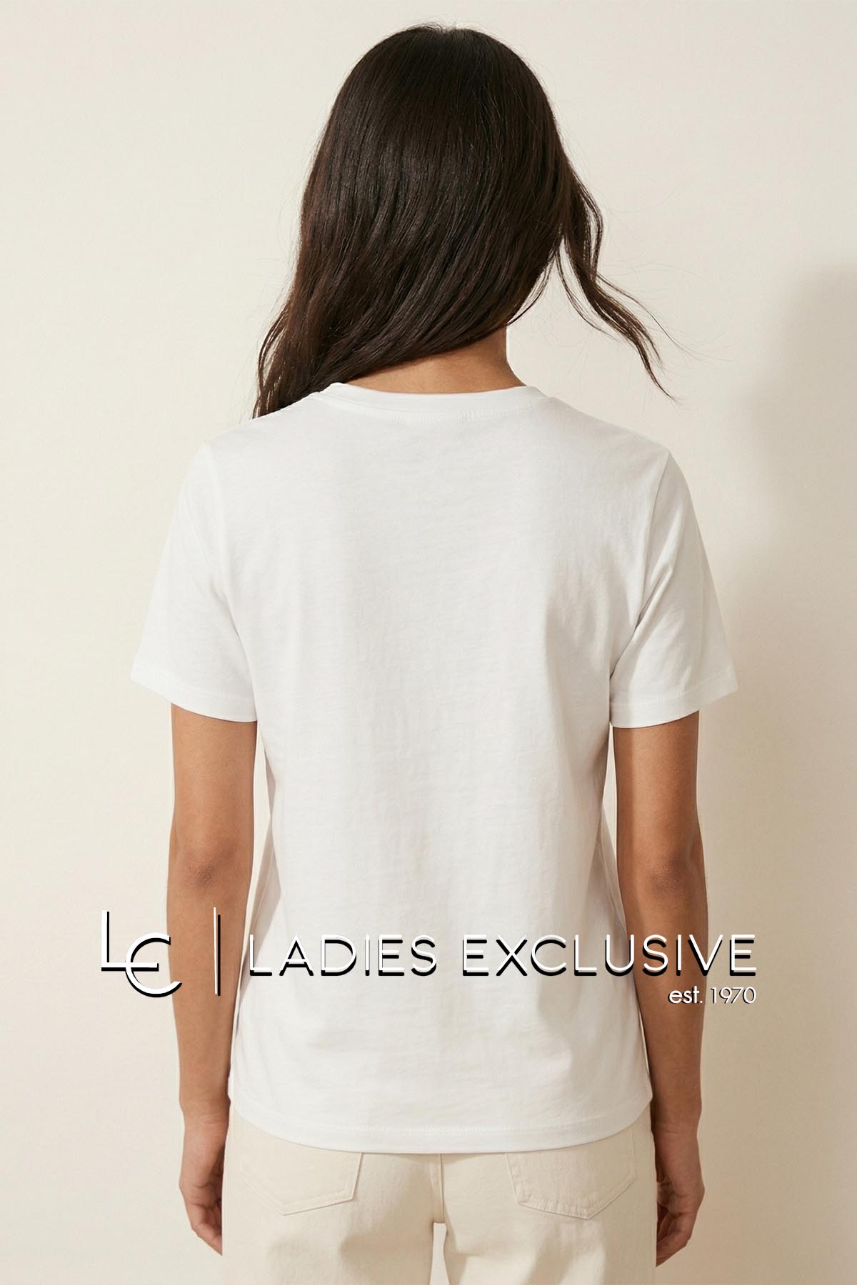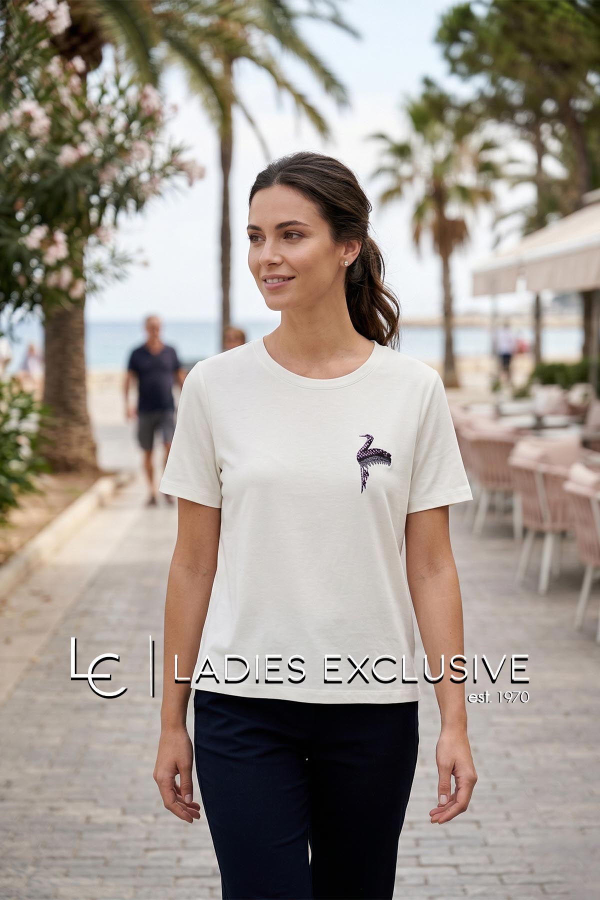 NICOLA Μπλούζα λευκή κοντομάνικη με κύκνο με μικρές πέτρες και λεπτομέρειες δερματίνης.