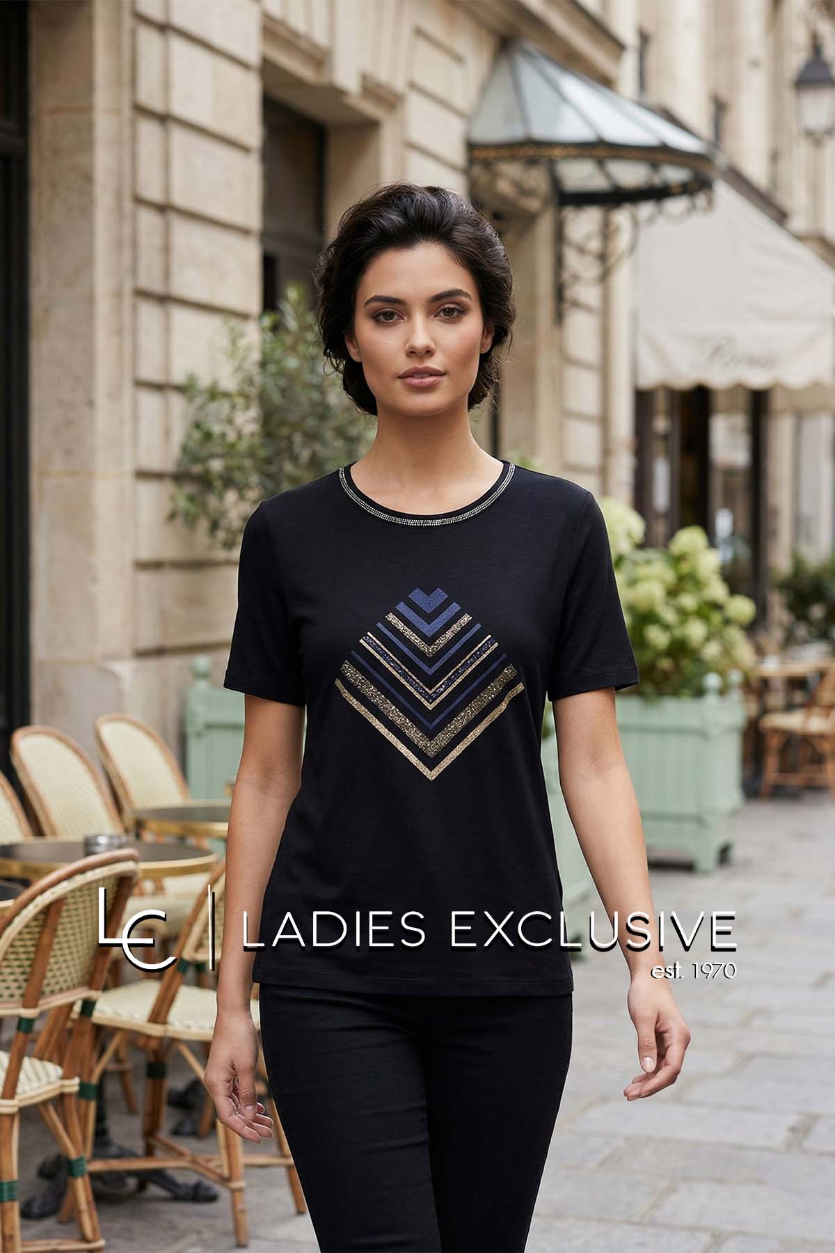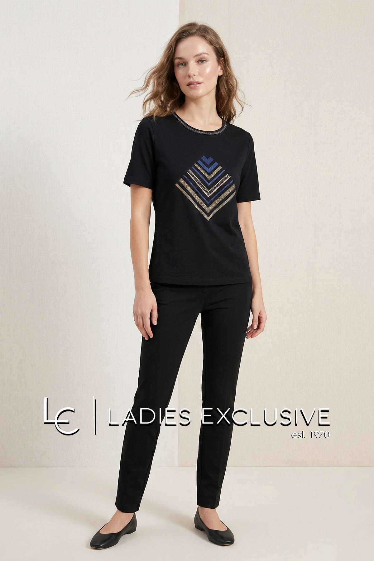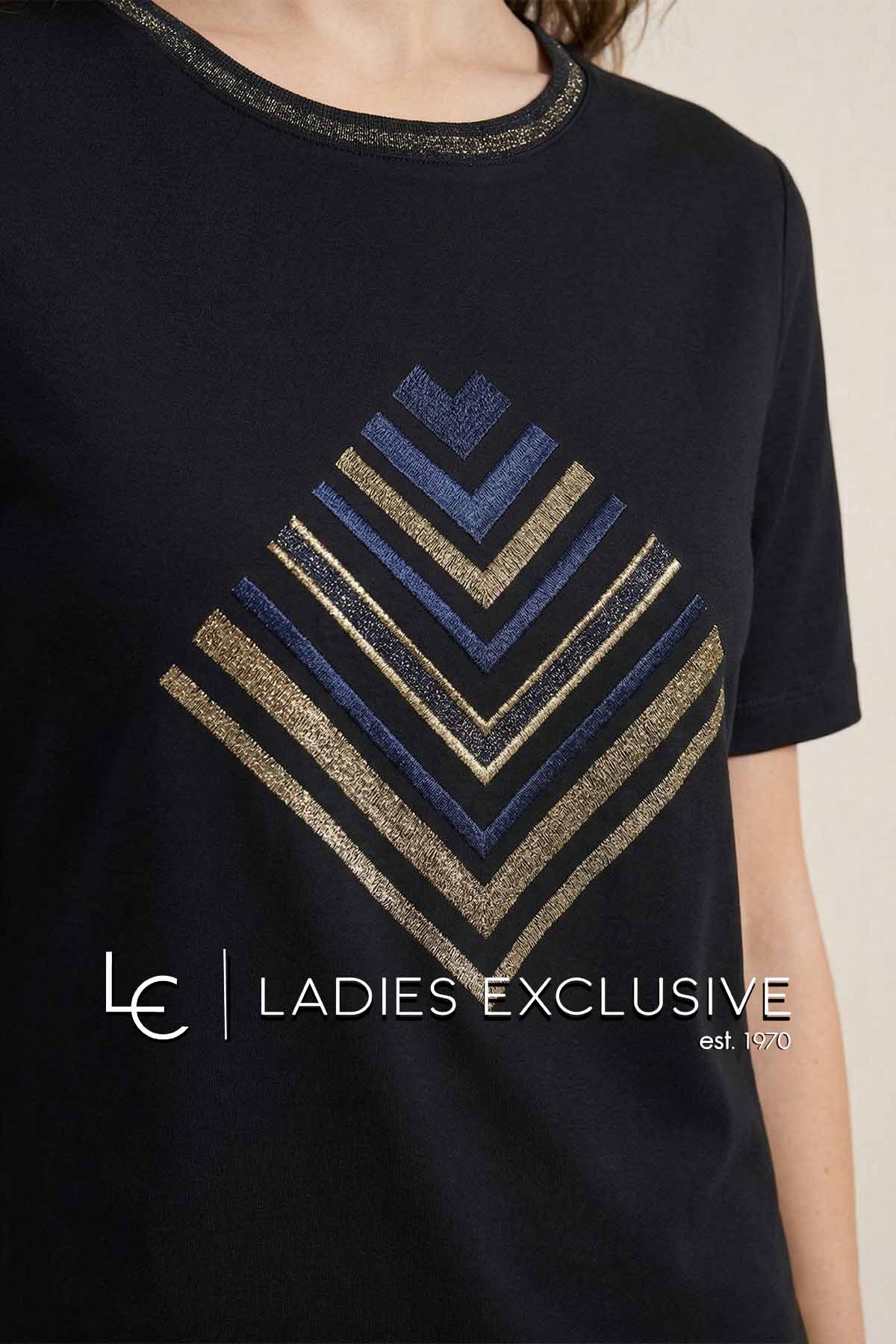 NICOLA Μπλούζα μπλε κοντομάνικη με στάμπα γεωμετρικό σχήμα και στρας.