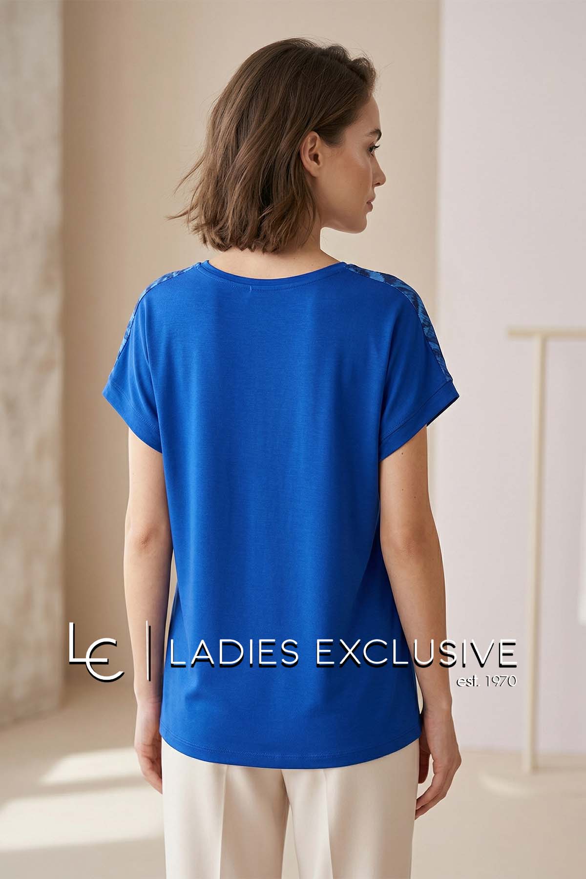 NICOLA Μπλούζα μπλε ρουά κοντομάνικη ντεγκραντέ με στρας και μανίκι ρεγκλάν.