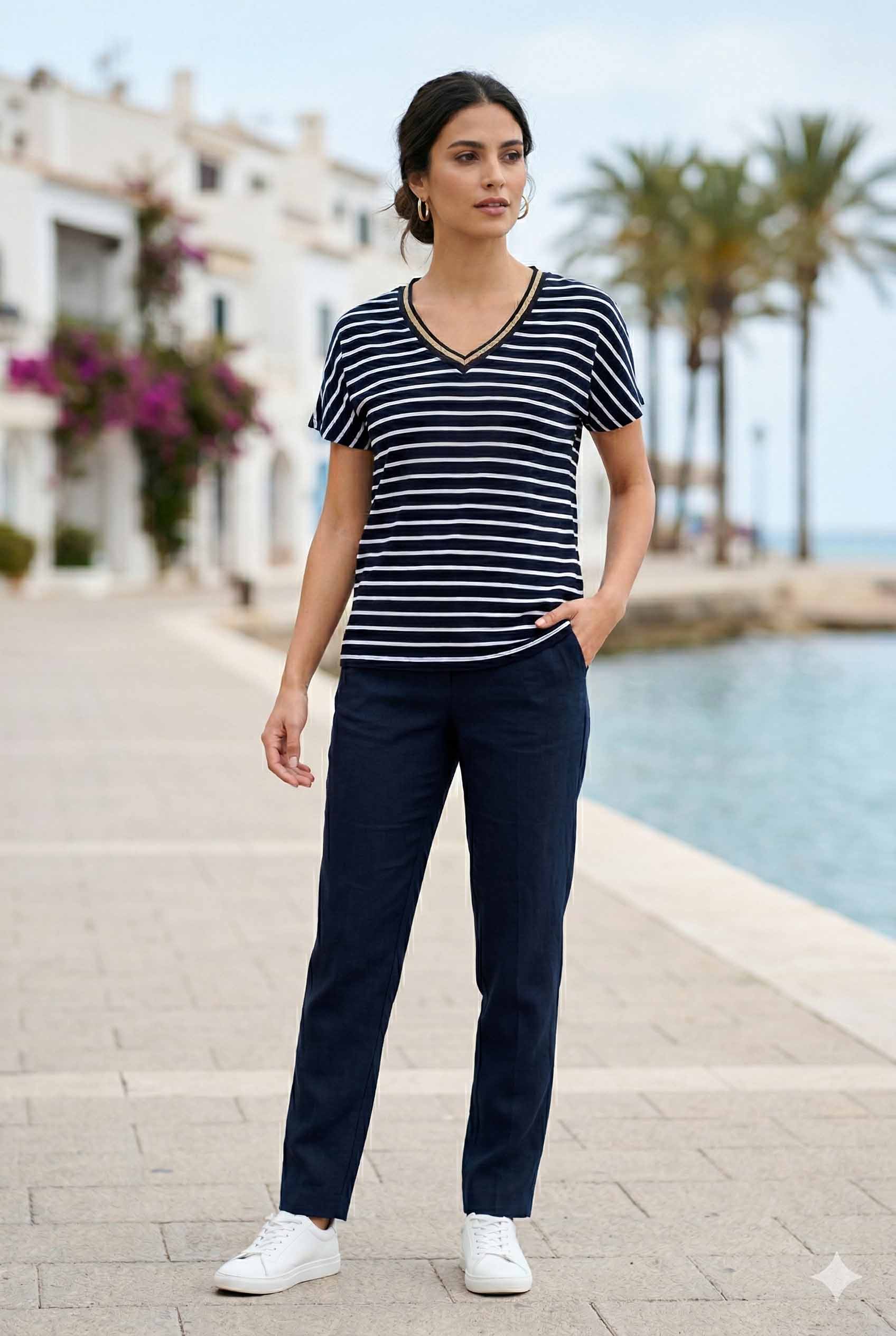 NICOLA Μπλούζα κοντομάνικη ριγέ με v