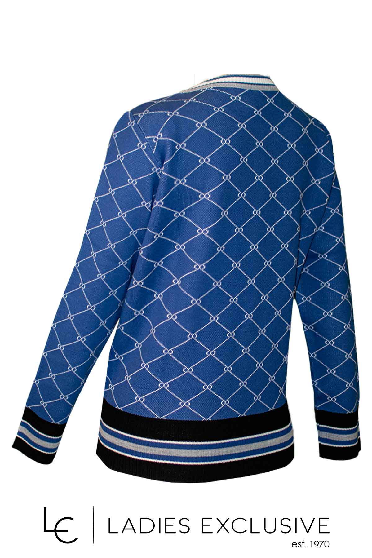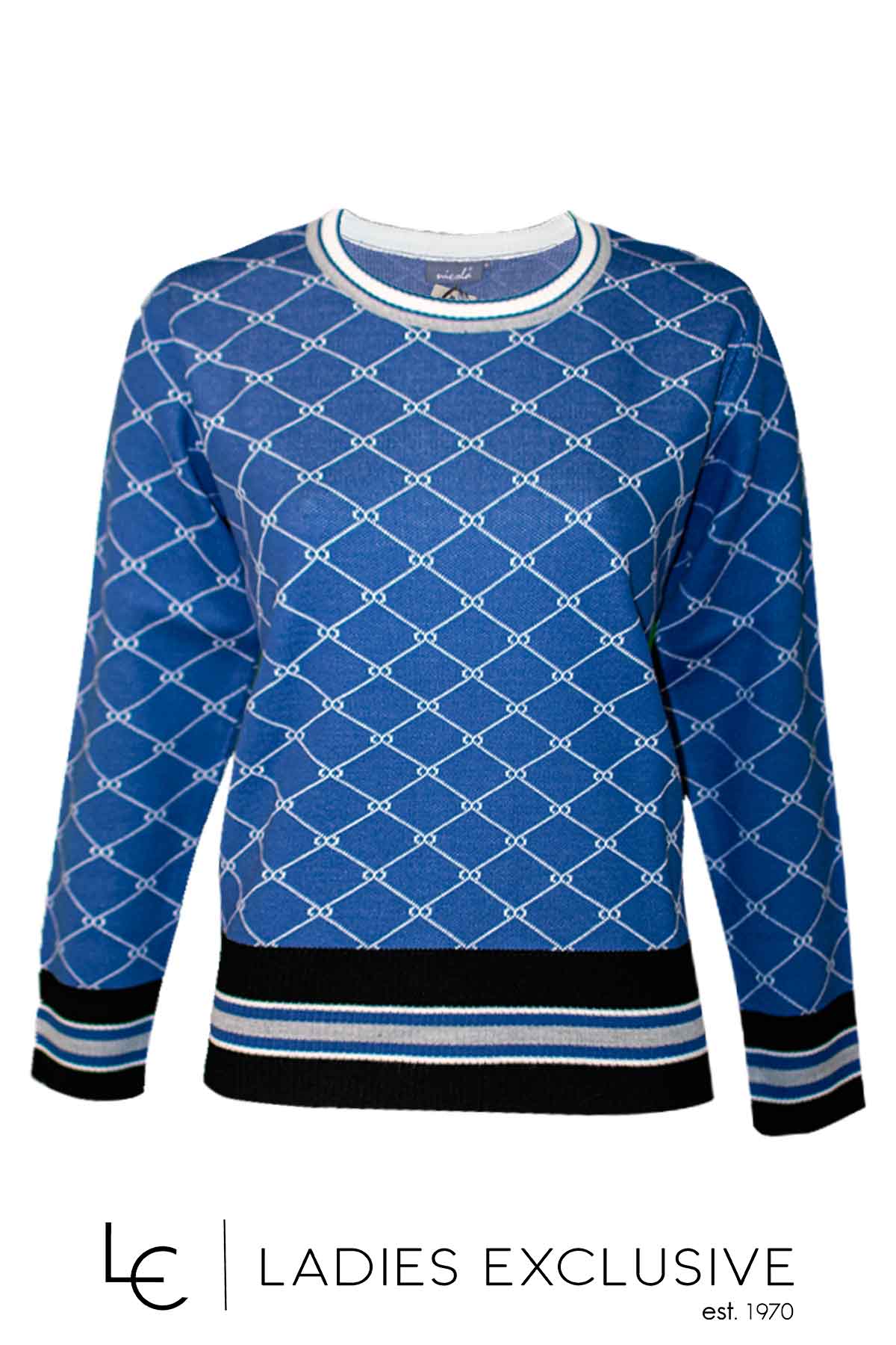 NICOLA Μπλούζα μπλε μάλλινη με vintage σχέδιο και χρωματιστές ρίγες στα τελειώματα.