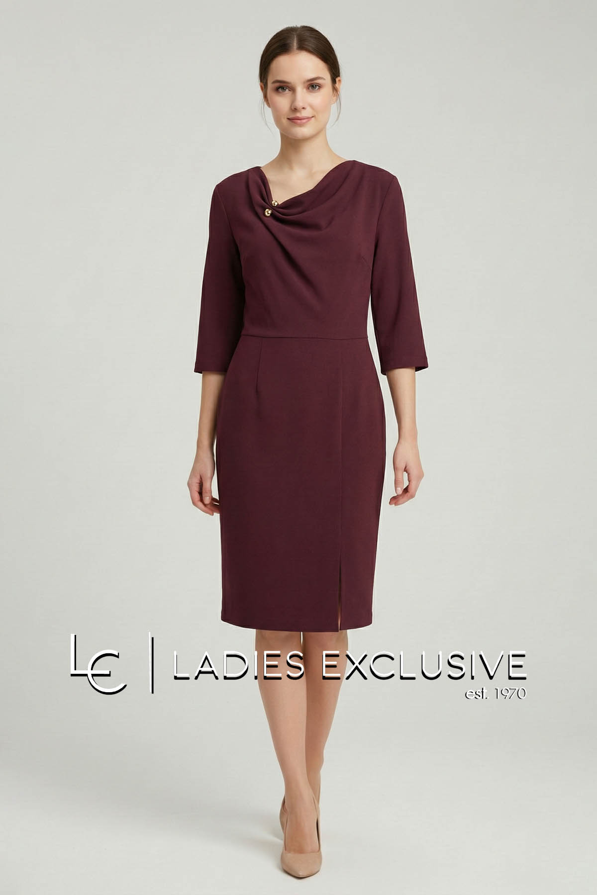 WEFTS Φόρεμα μπορντώ μίντι με σκίσιμο στο μπροστινό μέρος και μοτίφ στο ντραπέ άνοιγμα στο λαιμό.