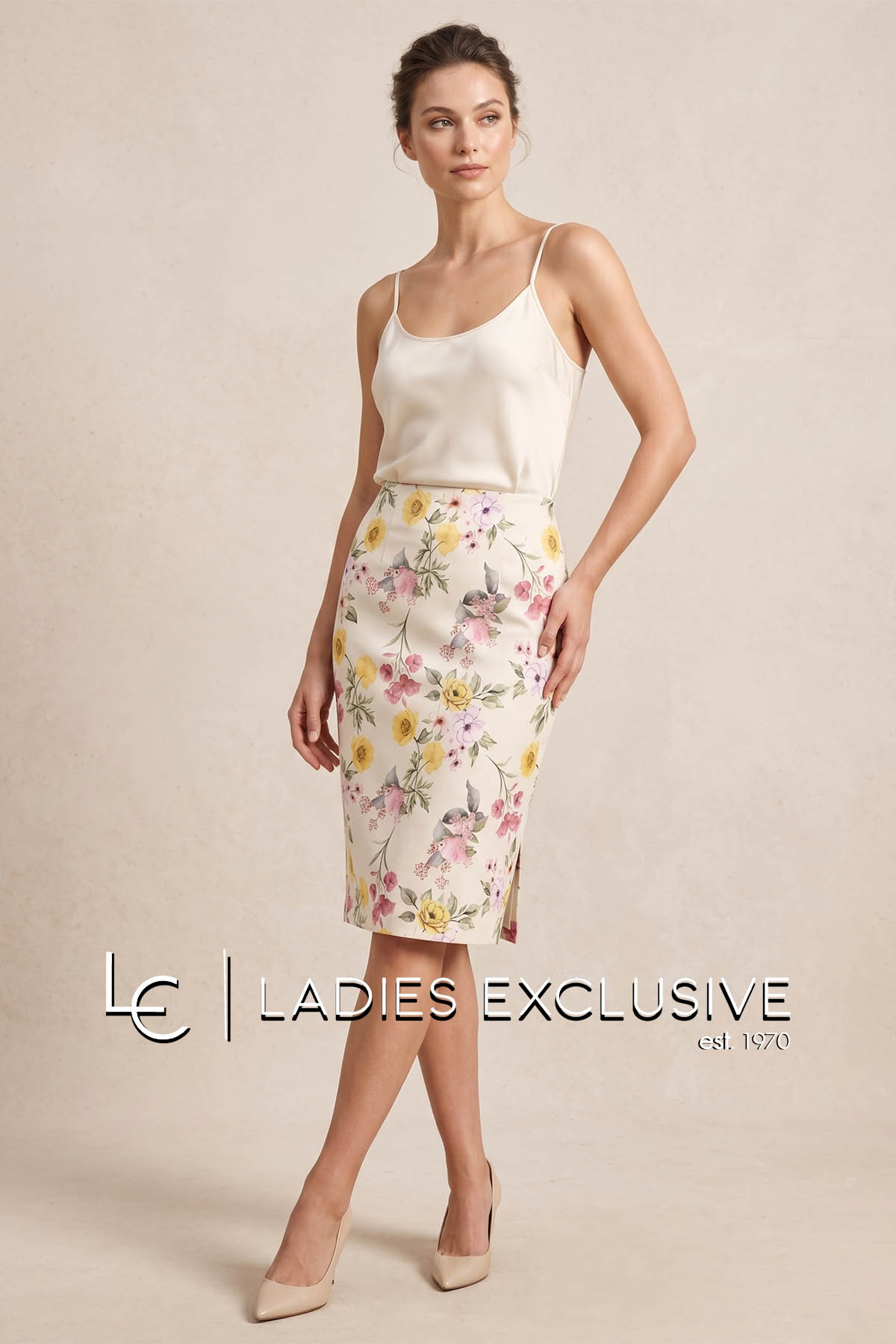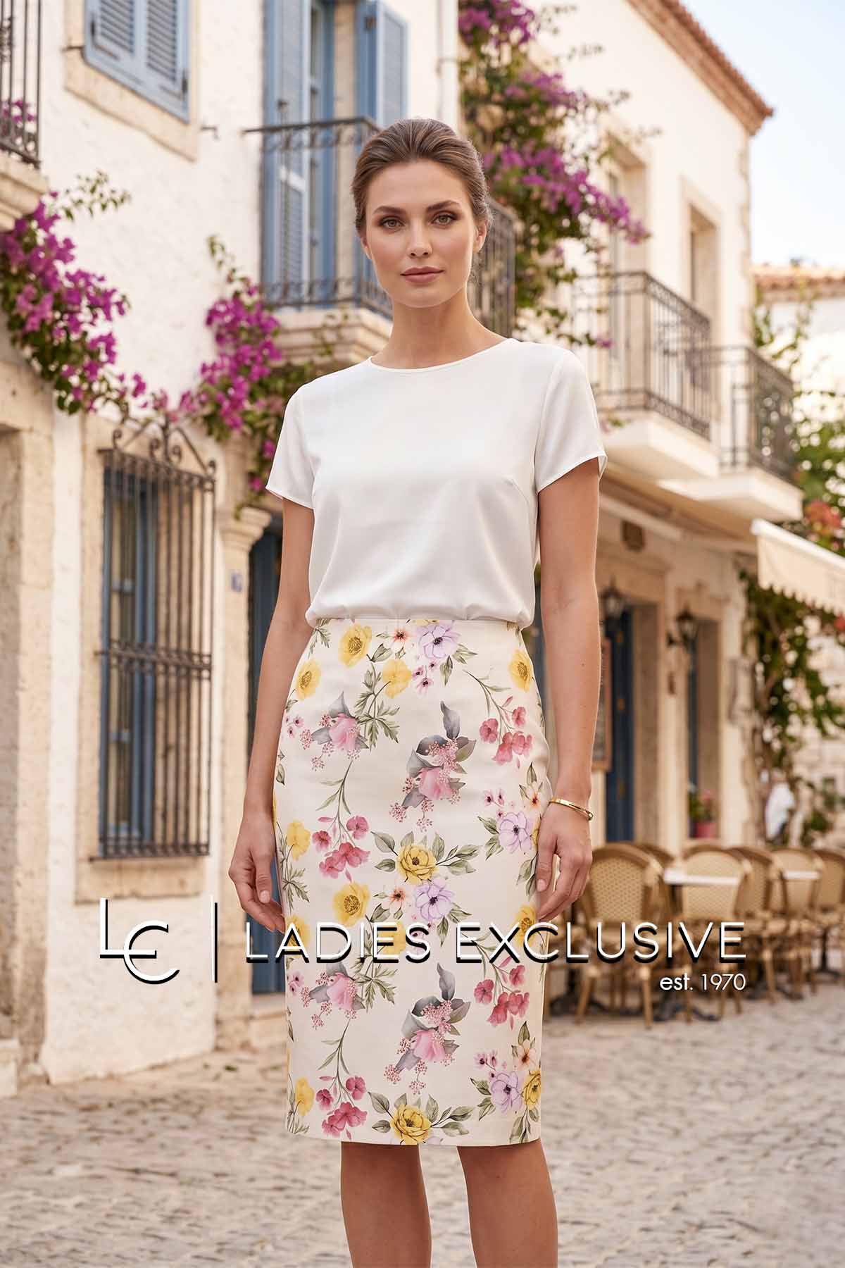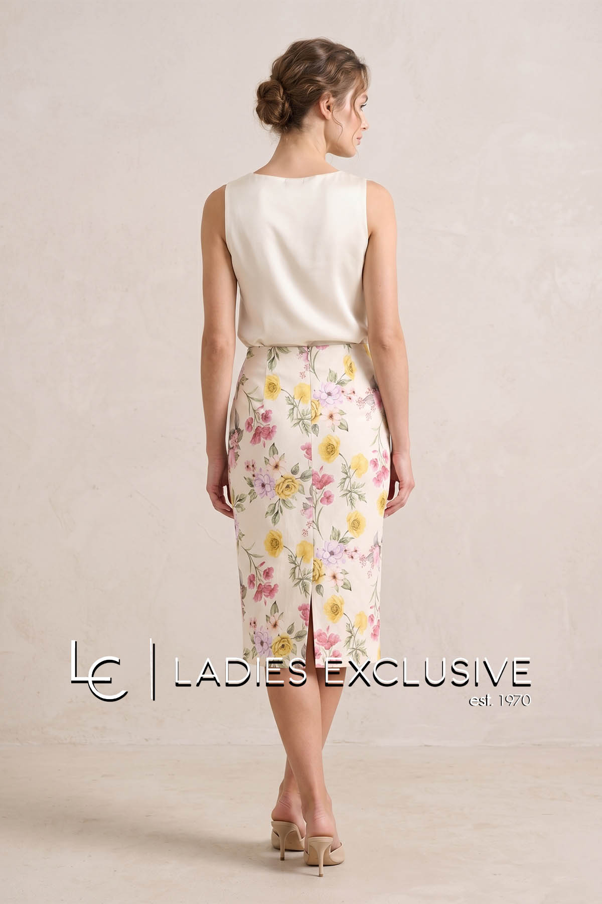 BELLA P. Φούστα βαμβακερη φλοράλ σε ίσια γραμμή.