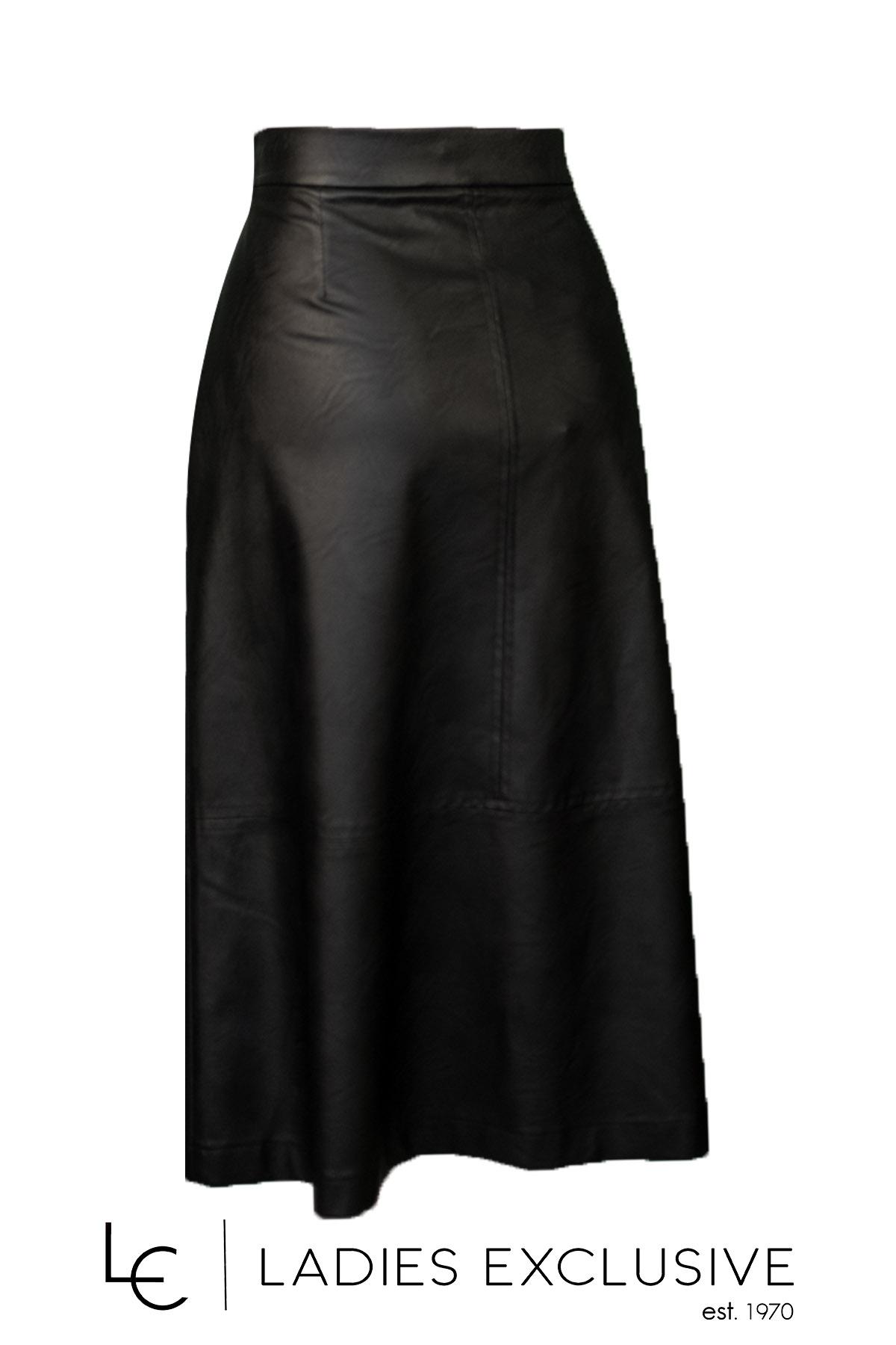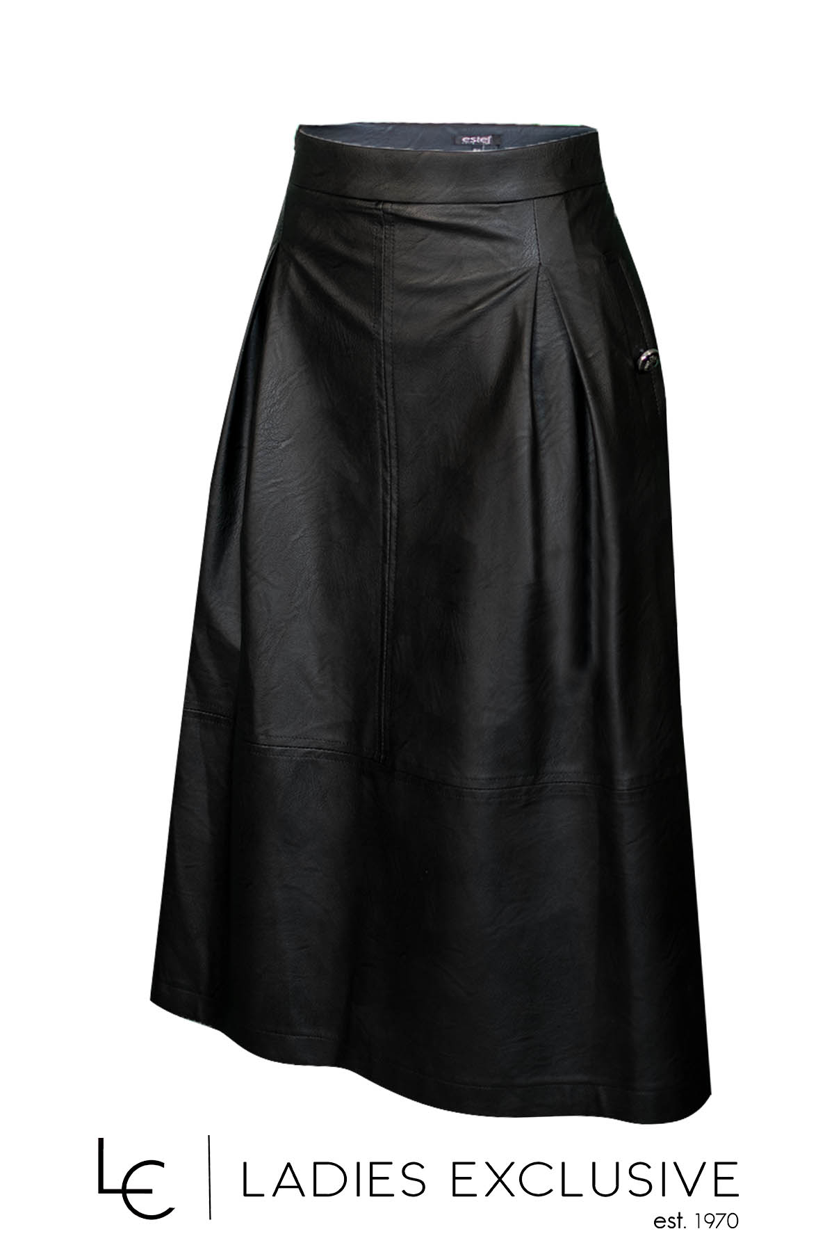 ESTEL Φούστα μαύρη από τεχνόδερμα σε γραμμή A με πιέτες και πλαϊνές τσέπες.