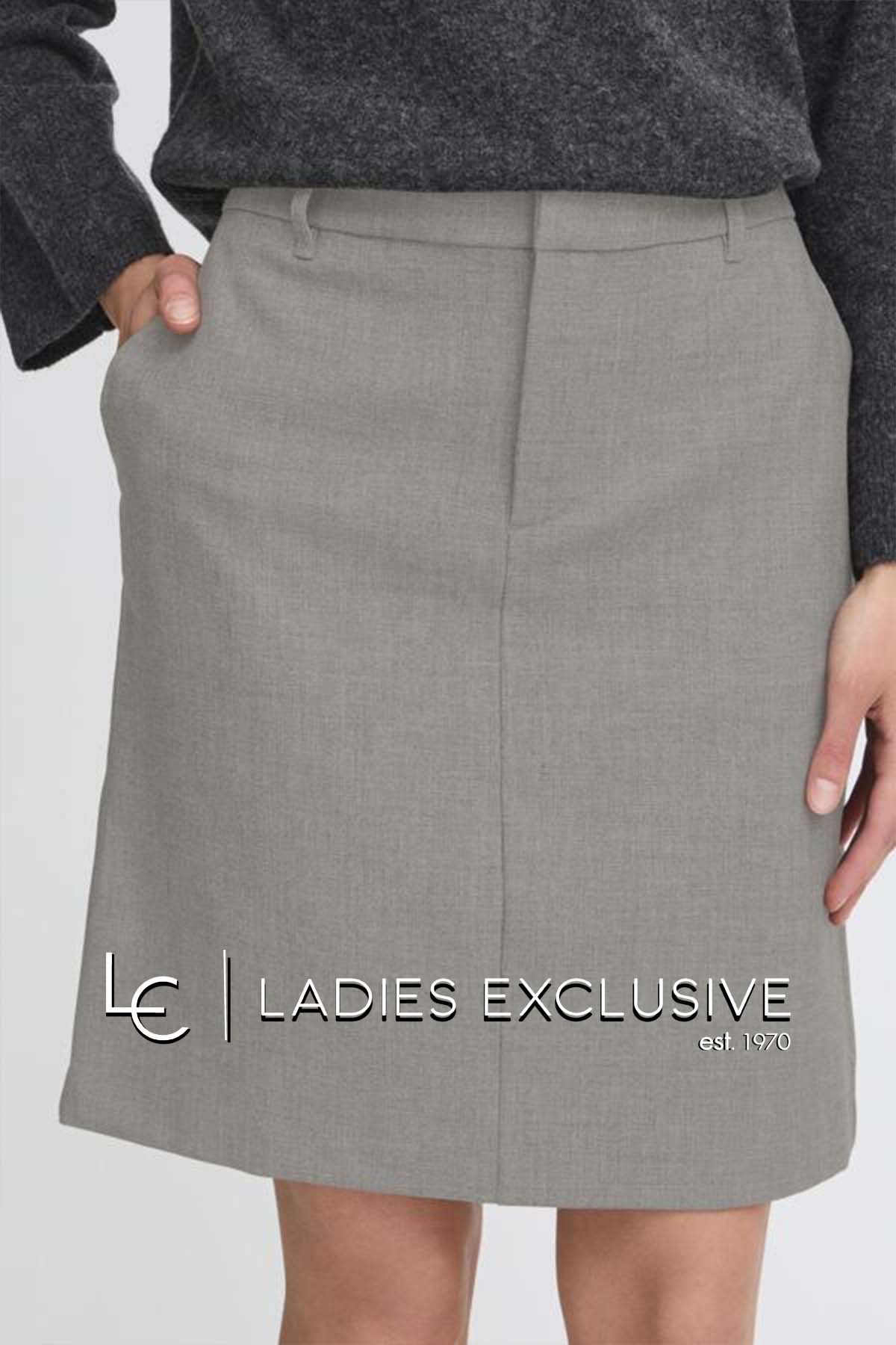FRANSA Φούστα γκρι σε ίσια γραμμή με λάστιχο στη μέση και πλαϊνές τσέπες.