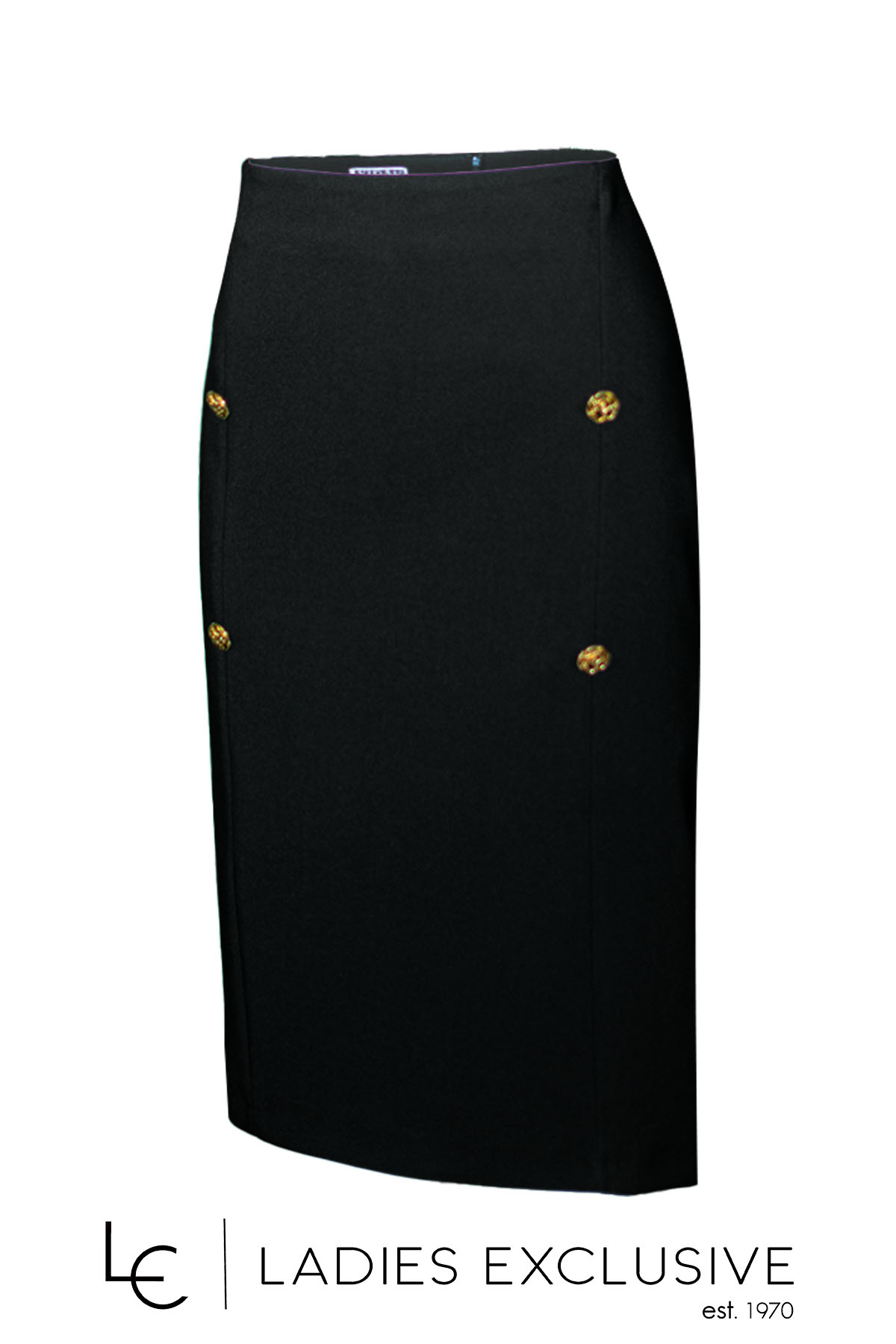 VIDAL Φούστα μαύρη κρεπ σε ίσια γραμμή, με διακοσμητικά χρυσά κουμπιά.