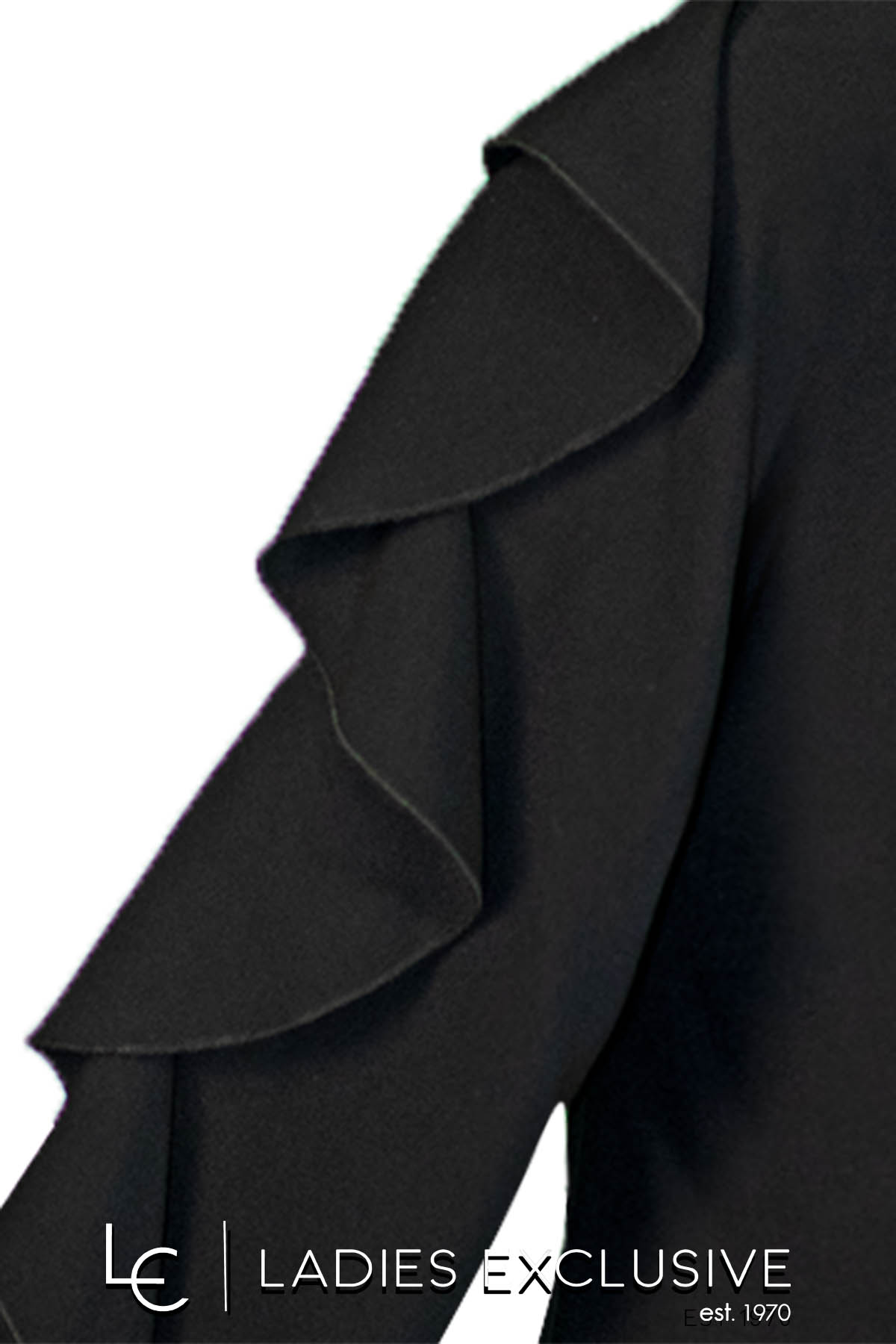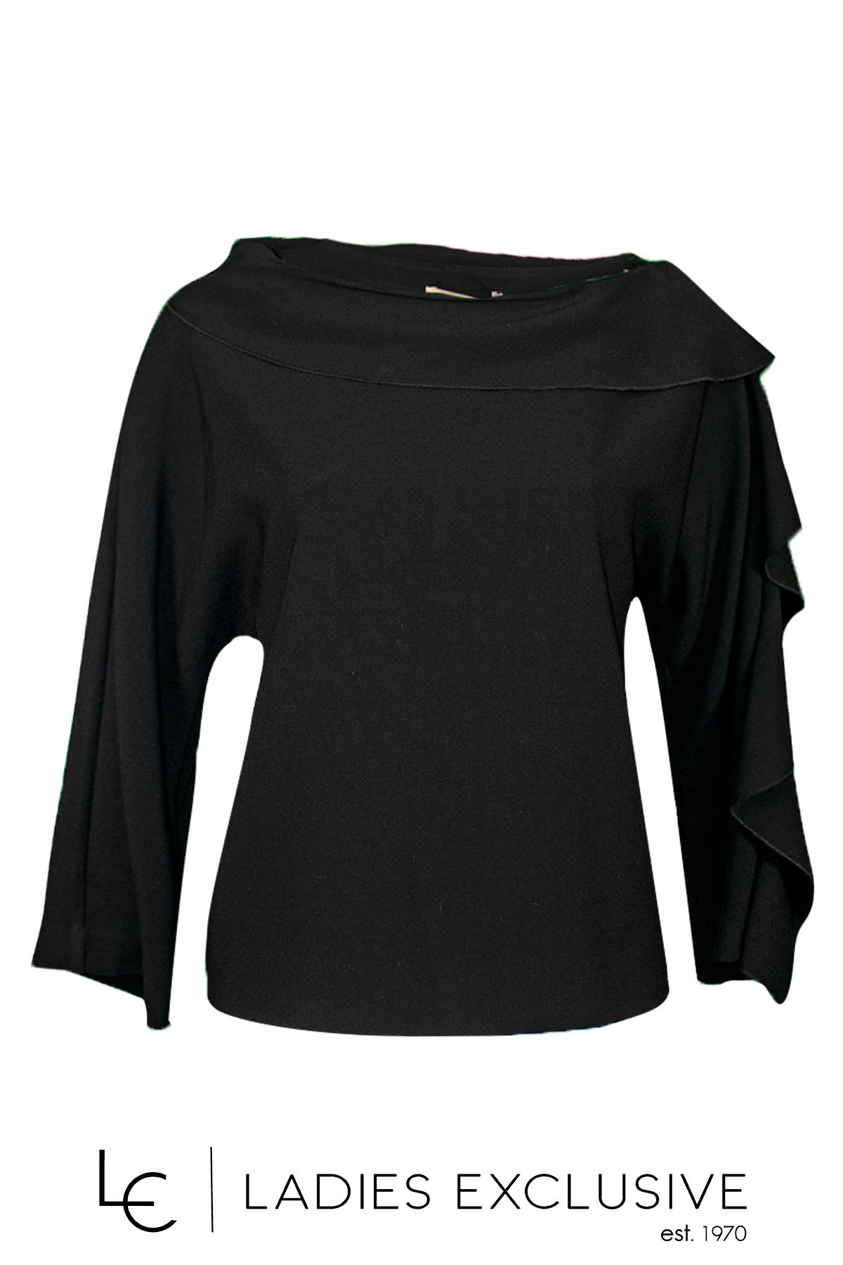 BELLA P. Μπλούζα μαύρη κρεπ με φαρδύ μανίκι και πρόσθετο βολάν.