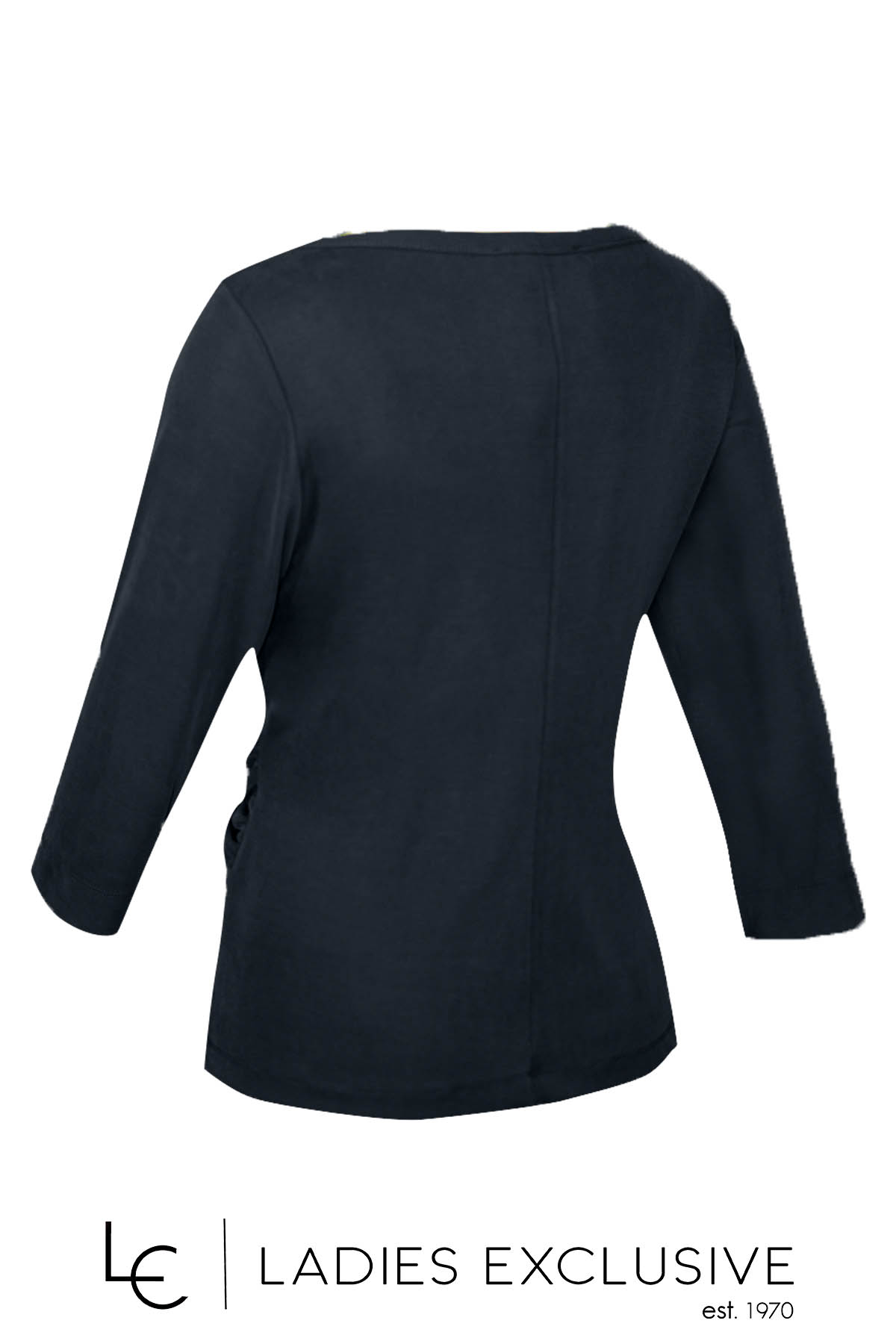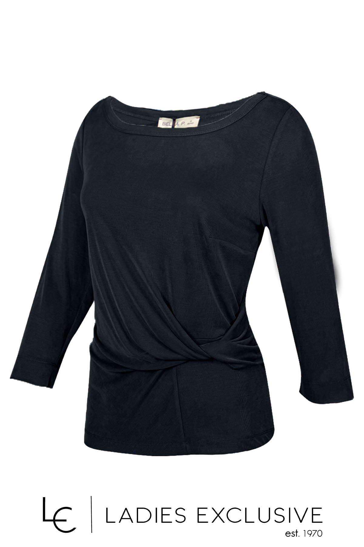 BELLA P. Μπλούζα μαύρη με ιδιαίτερο ντραπέ σχέδιο, μανίκι 3/4 και μεγάλη ανοιχτή λαιμόκοψη.