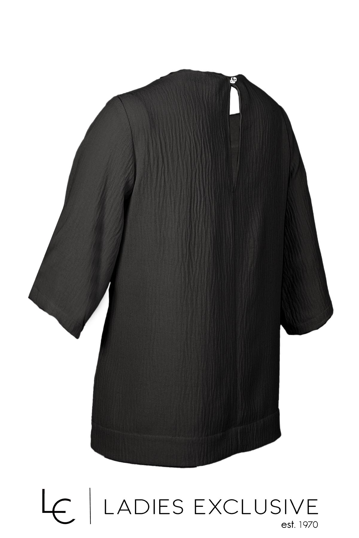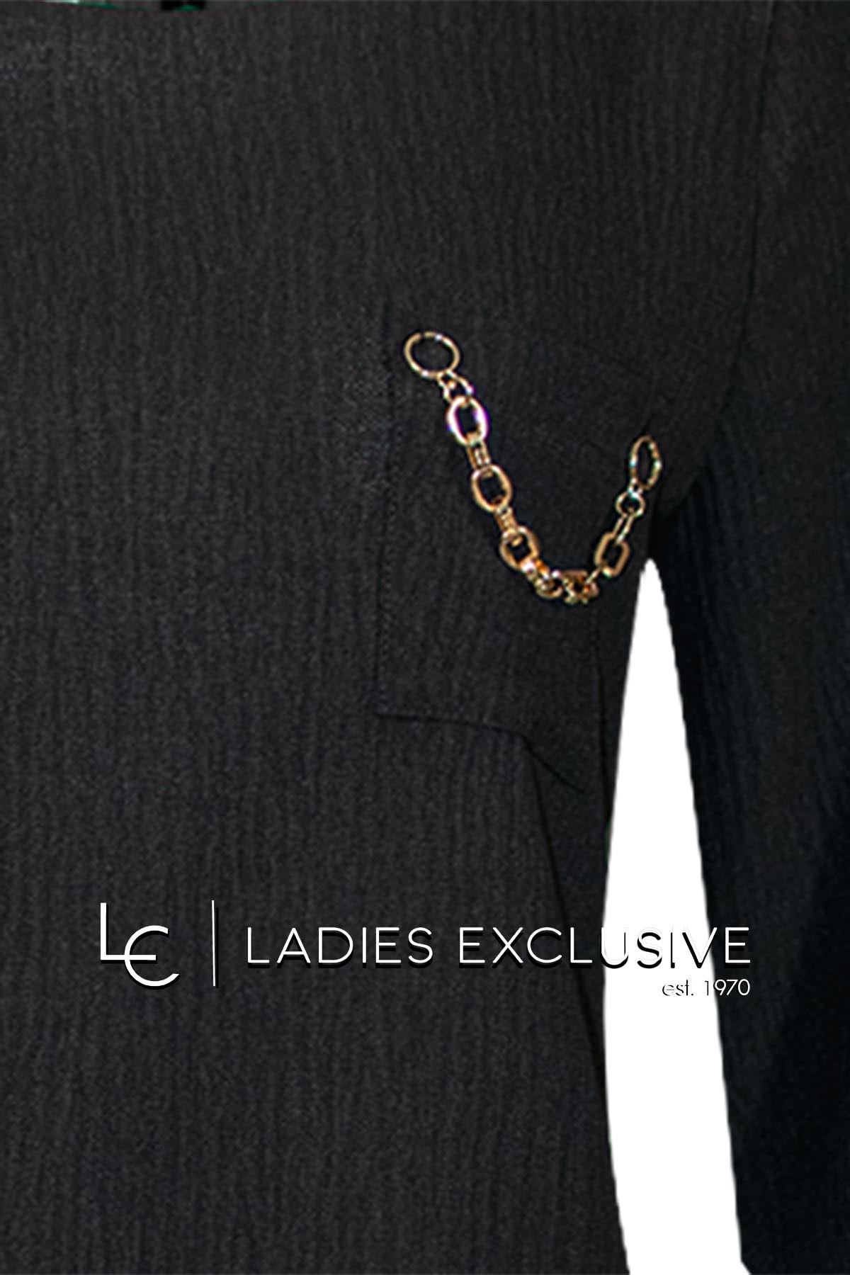 BELLA P. Μπλούζα μαύρη με μανίκι 3/4, τσέπη με αλυσιδάκι και ανάγλυφα σχέδια στην ύφανση.