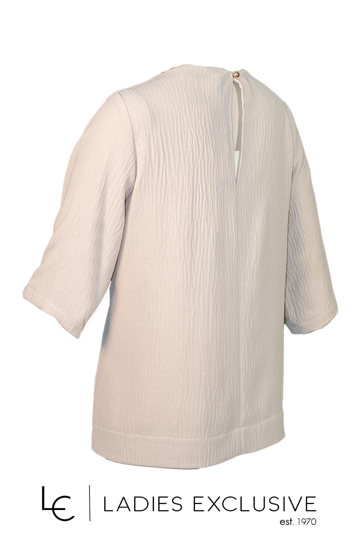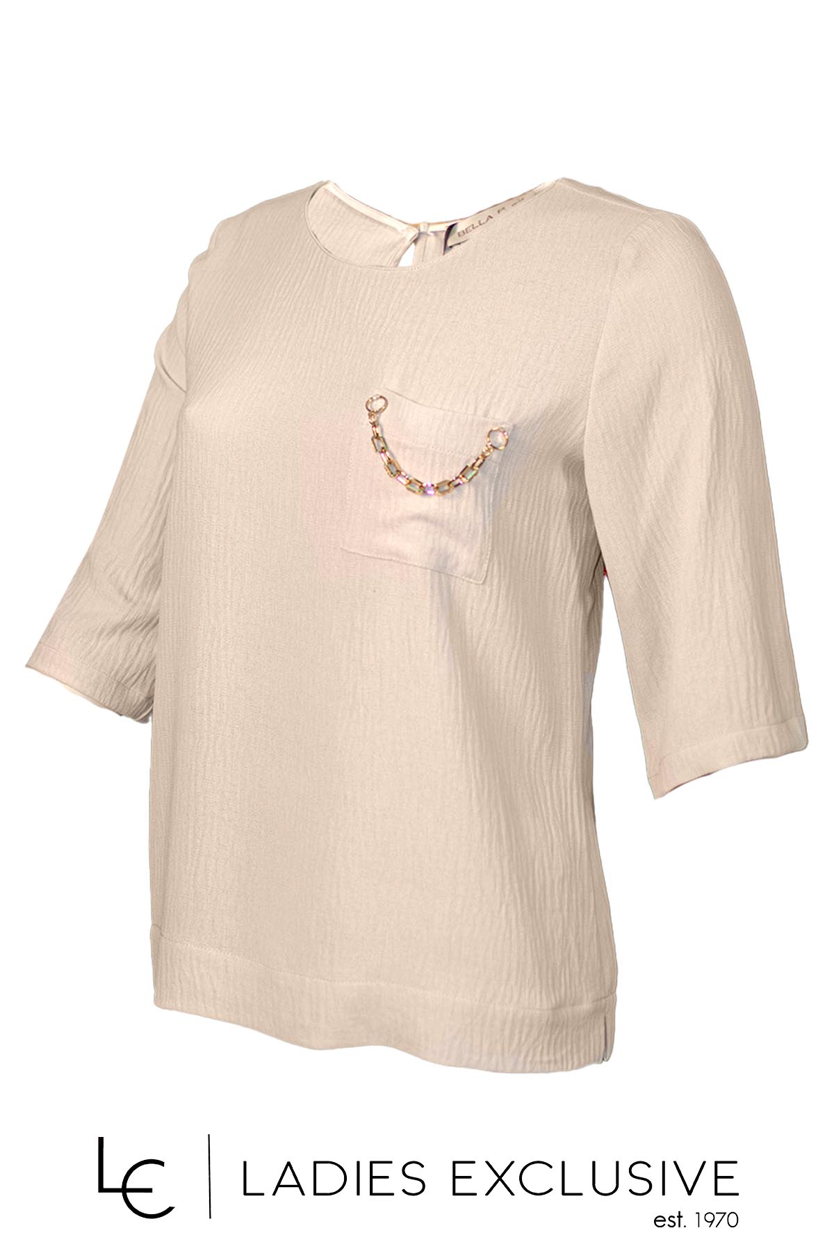 BELLA P. Μπλούζα μπεζ με μανίκι 3/4, τσέπη με αλυσιδάκι και ανάγλυφα σχέδια στην ύφανση.