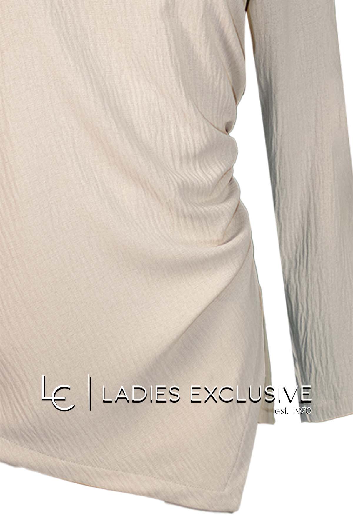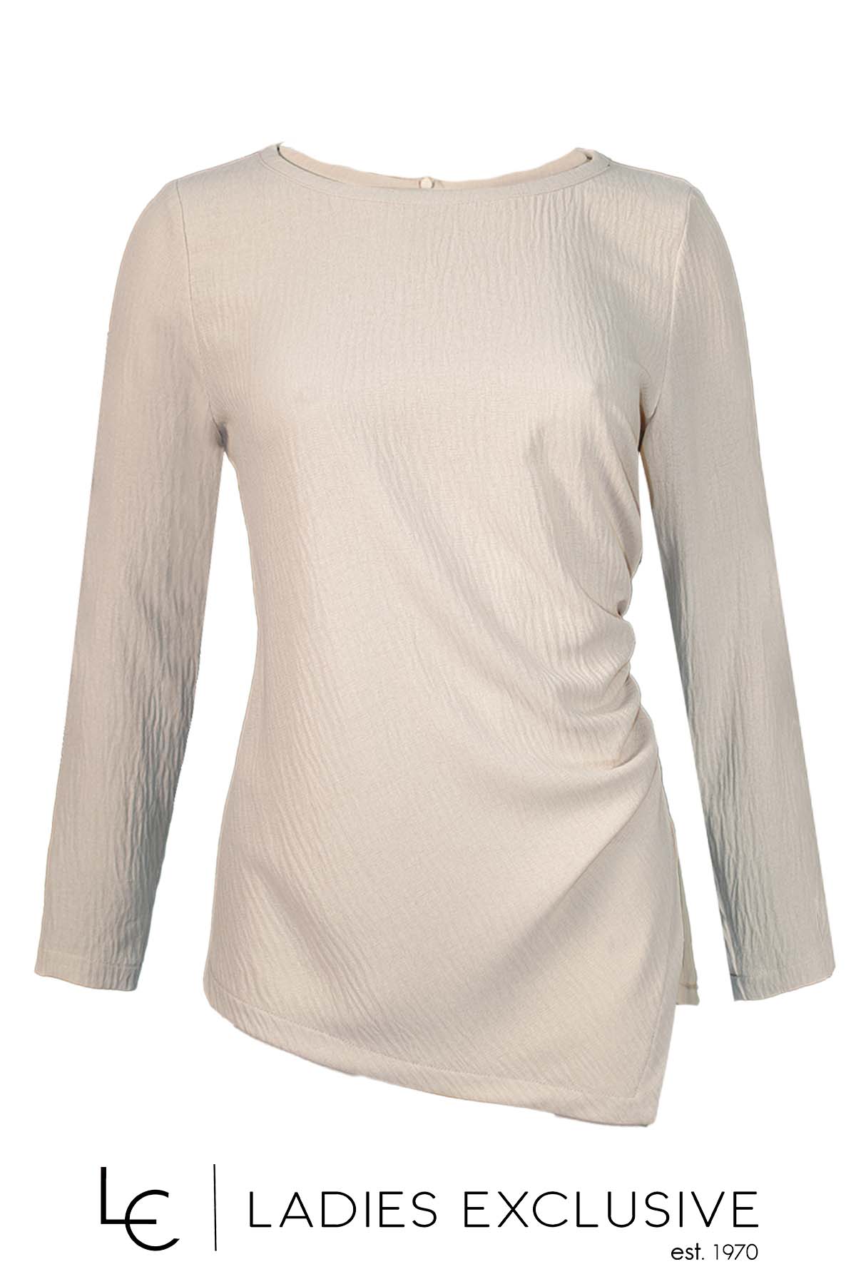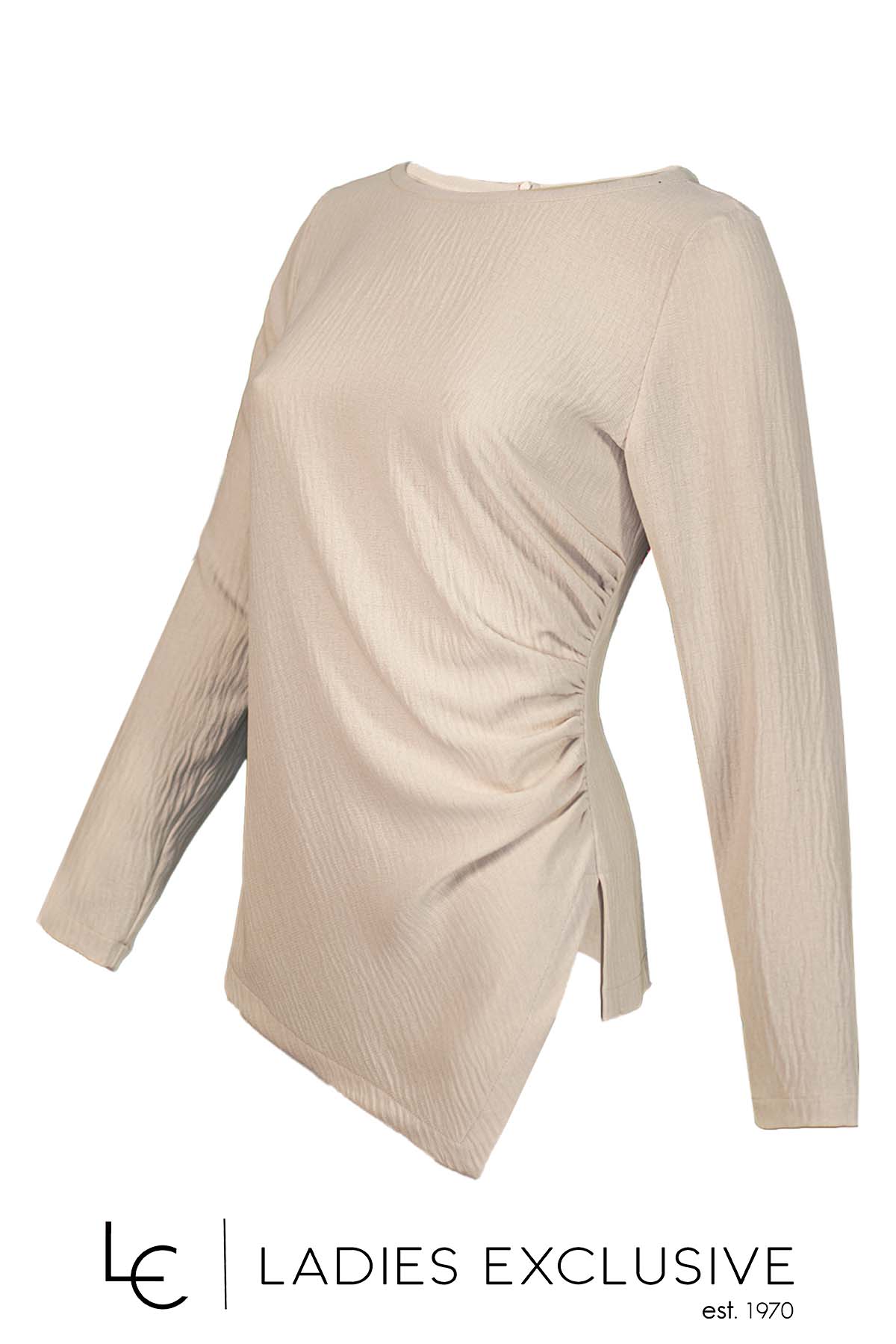 BELLA P. Μπλούζα μπεζ ντραπέ με ασύμμετρο άνοιγμα στο κάτω μέρος και φερμουάρ στην πλάτη.