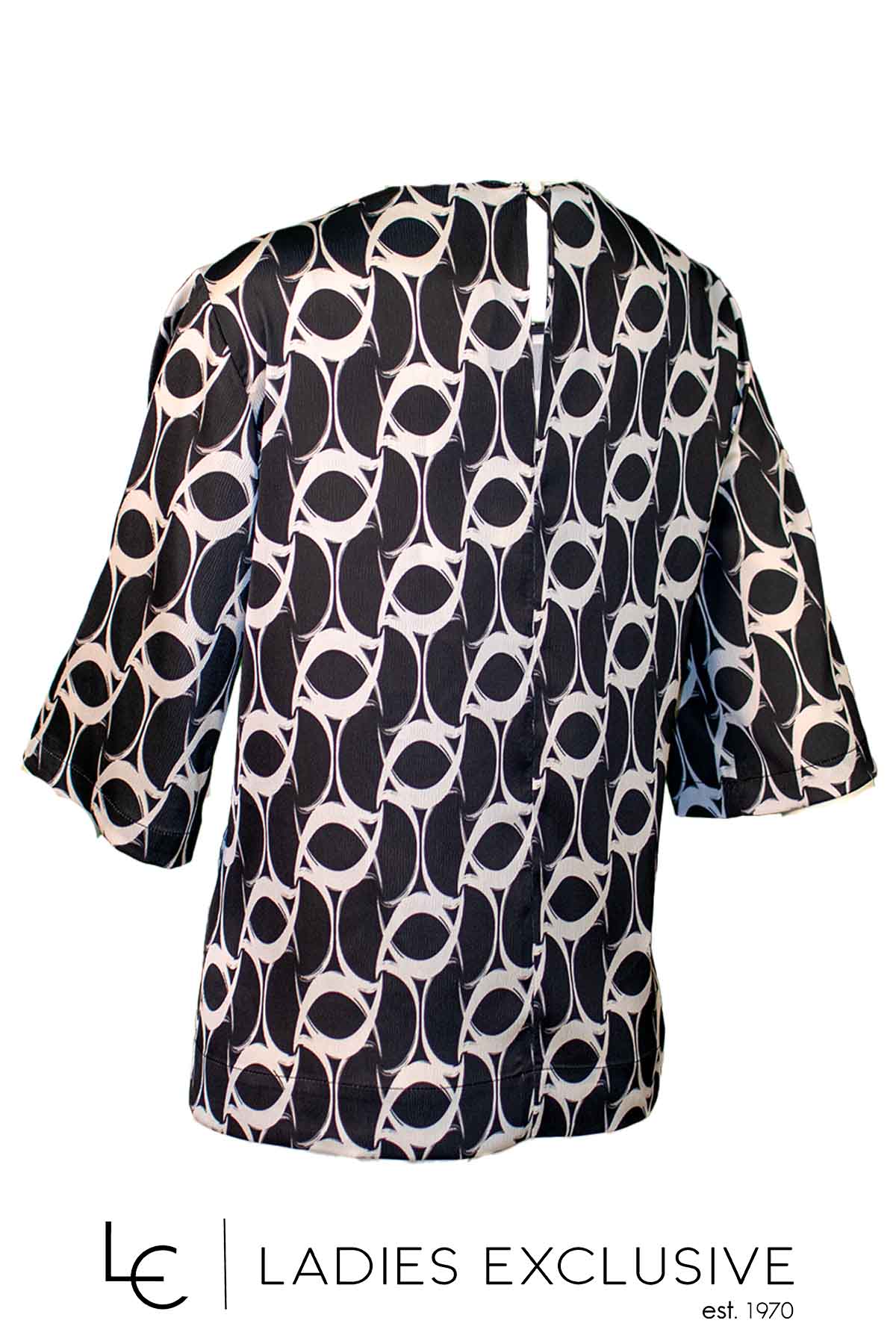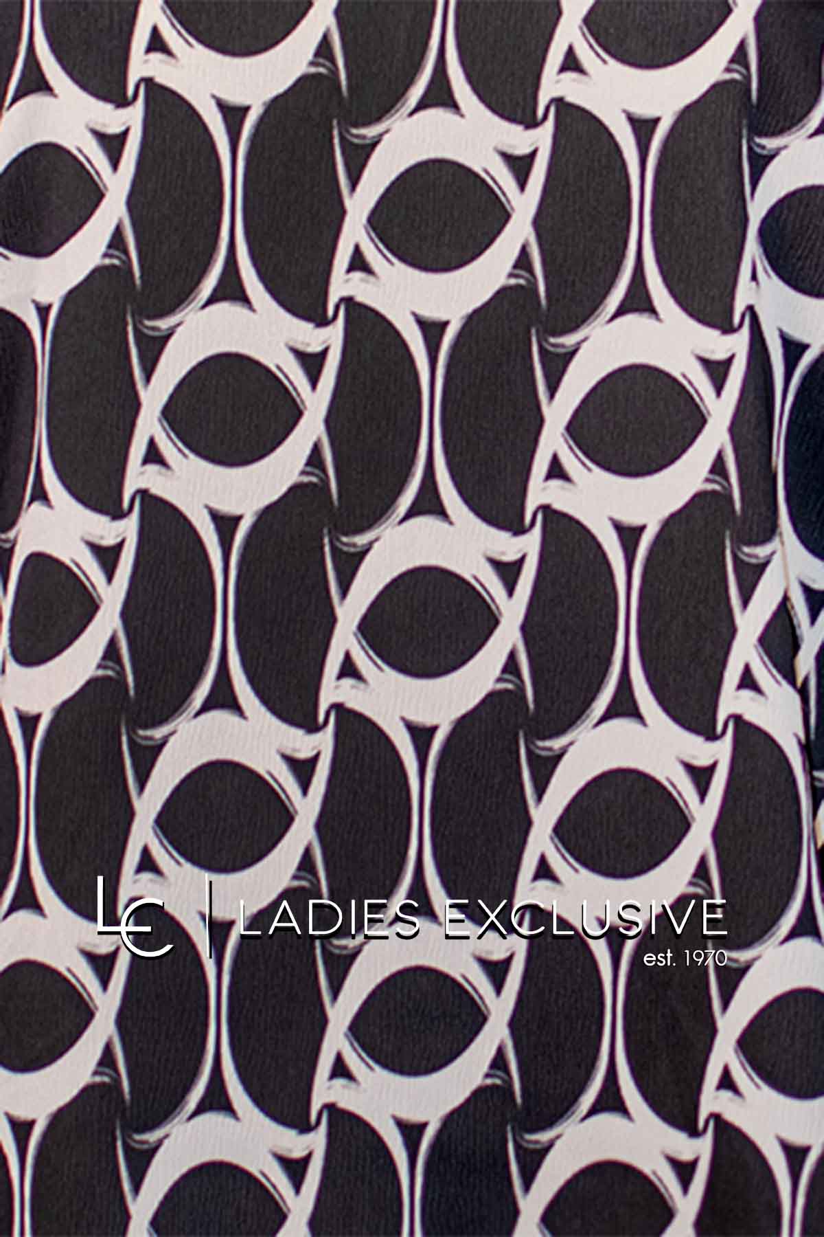 BELLA P. Μπλούζα καφέ με μπέζ σχέδια ριχτή, με μανίκι 3/4.