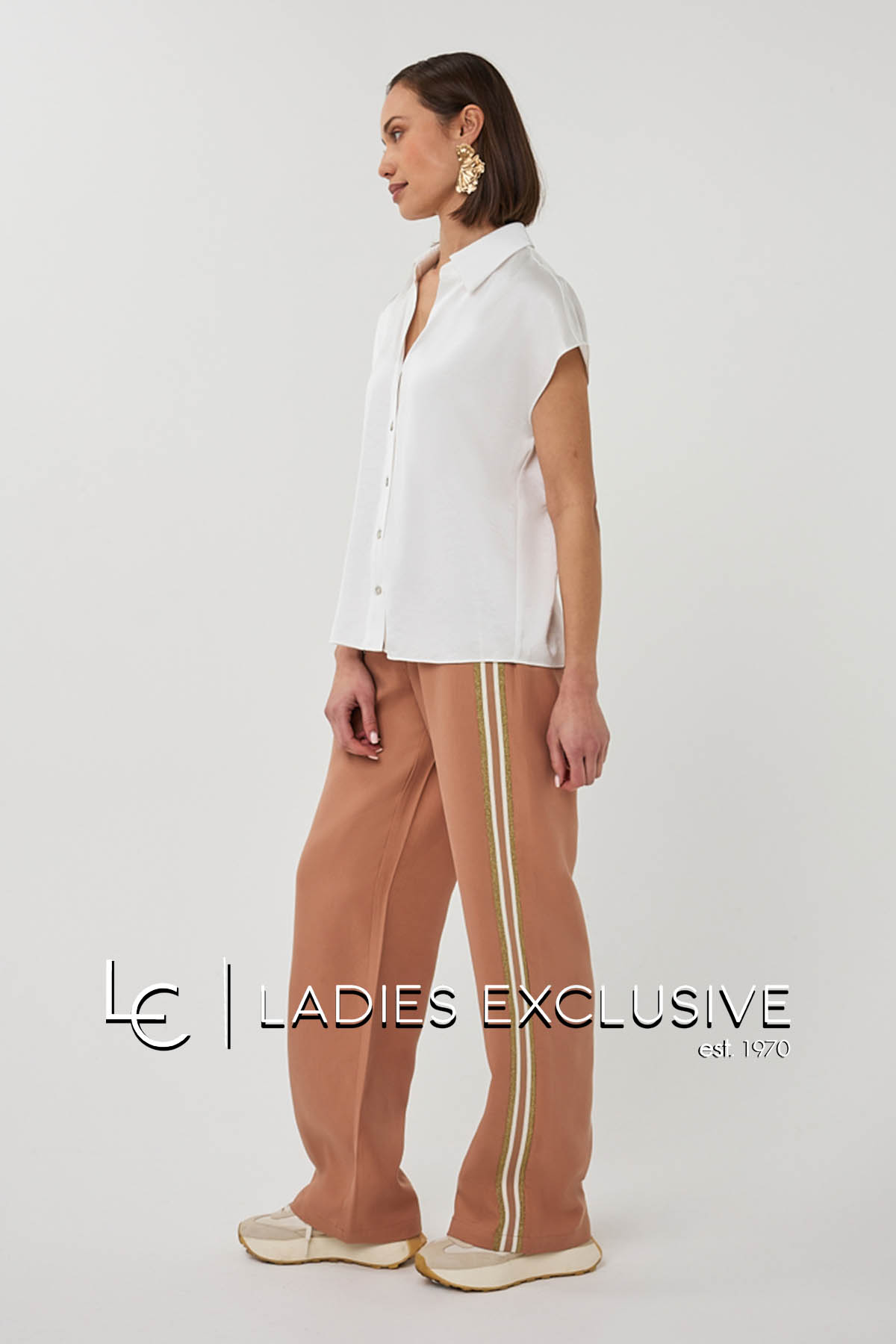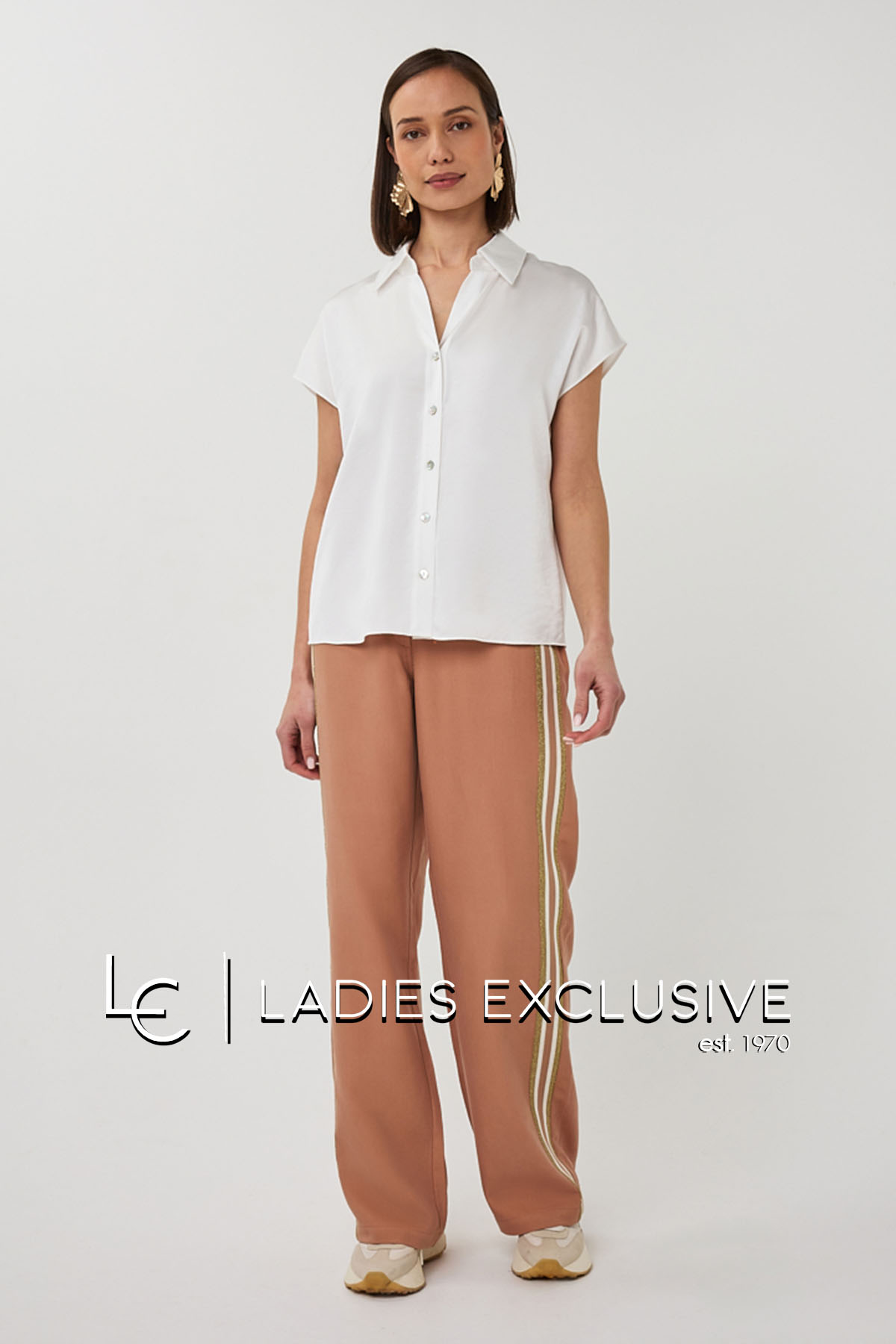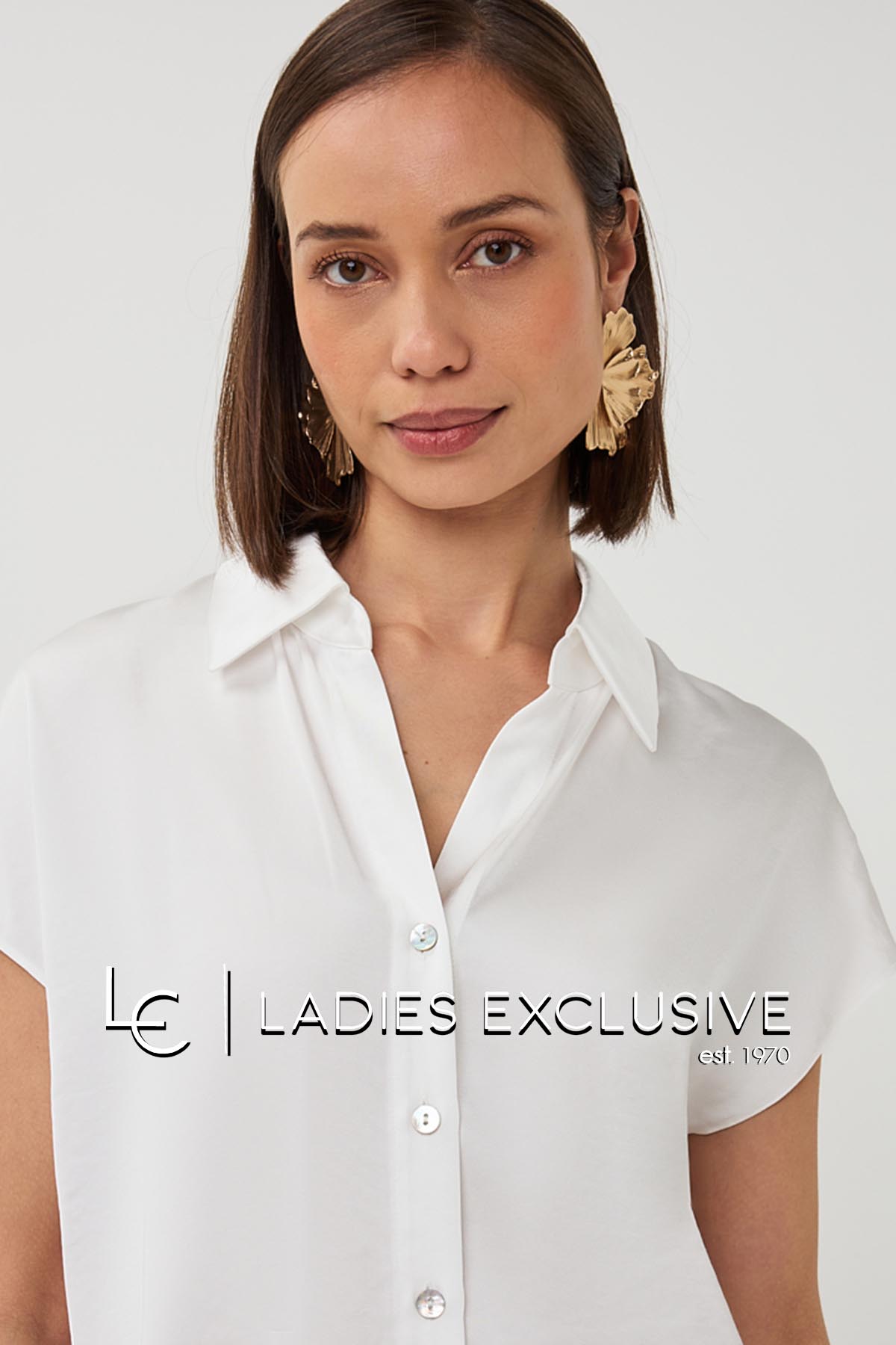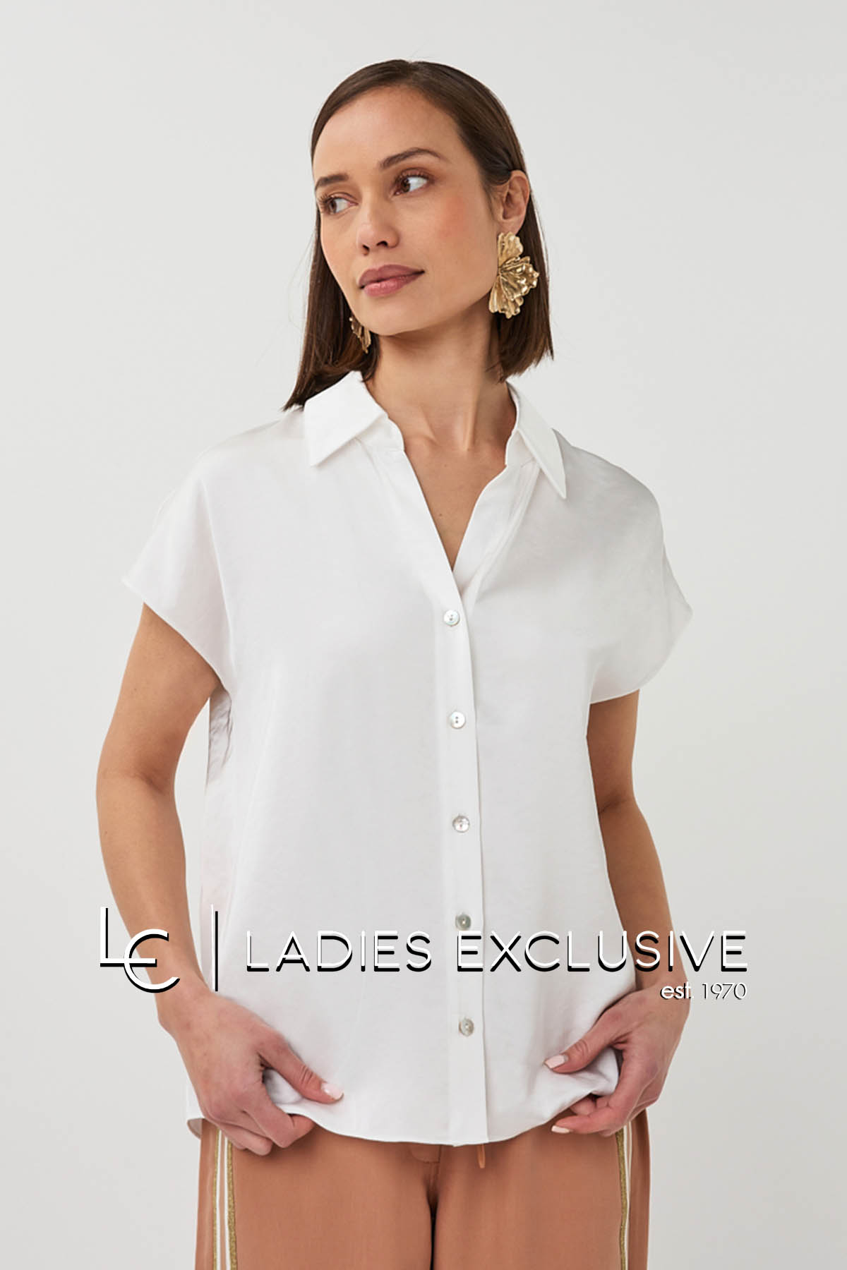 ESQUALO Πουκάμισο λευκό σατέν με κοφτό μανίκι.