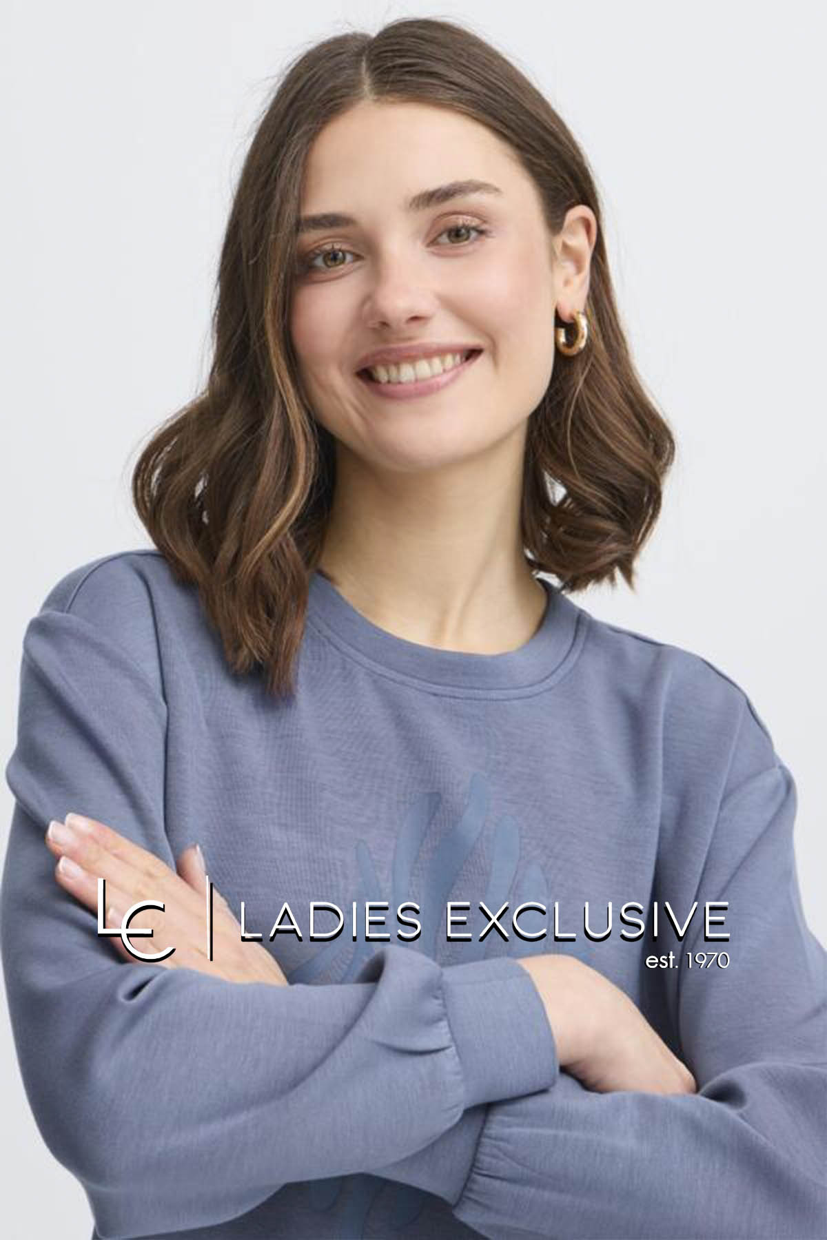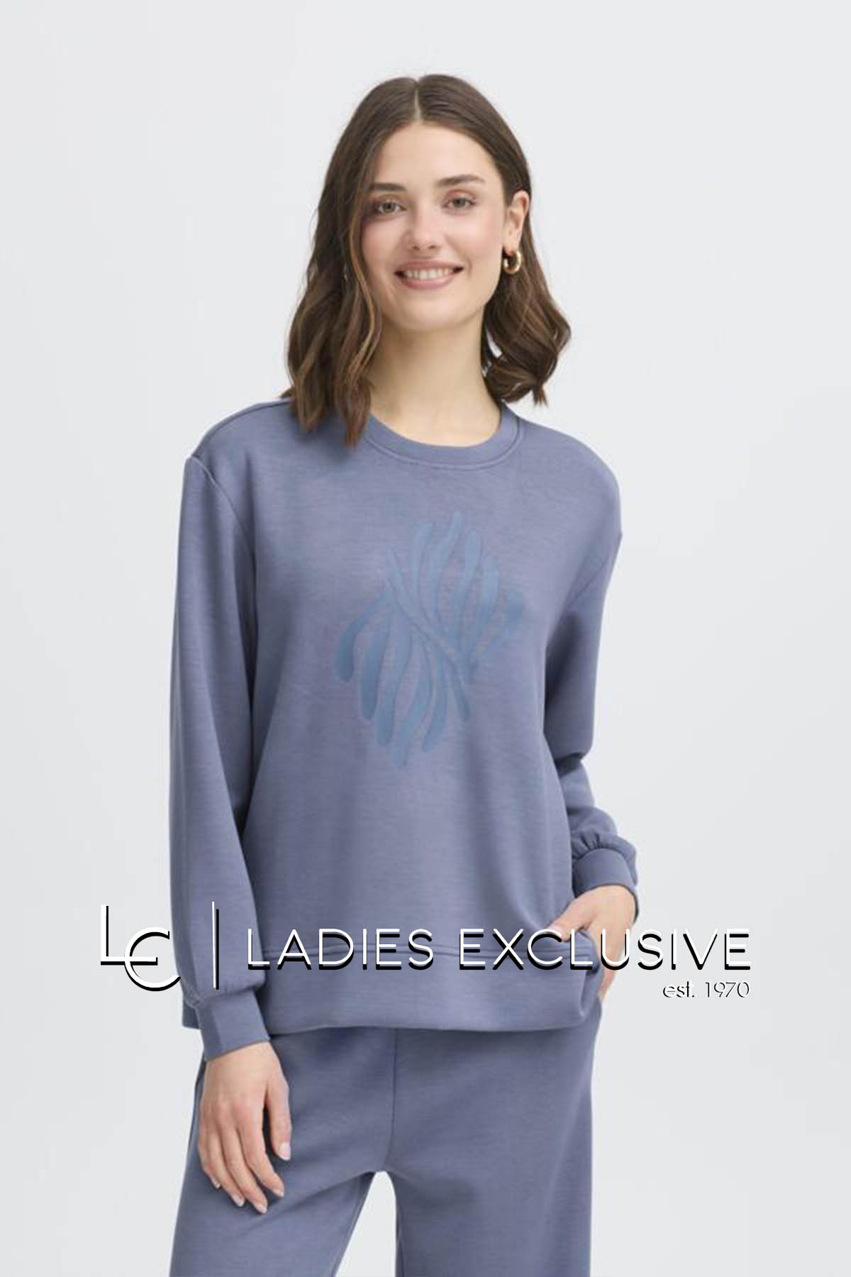 FRANSA Μπλούζα μπλε μακρυμάνικη με στάμπα. Γίνεται σετ με το παντελόνι με κωδικό 20615556.03.