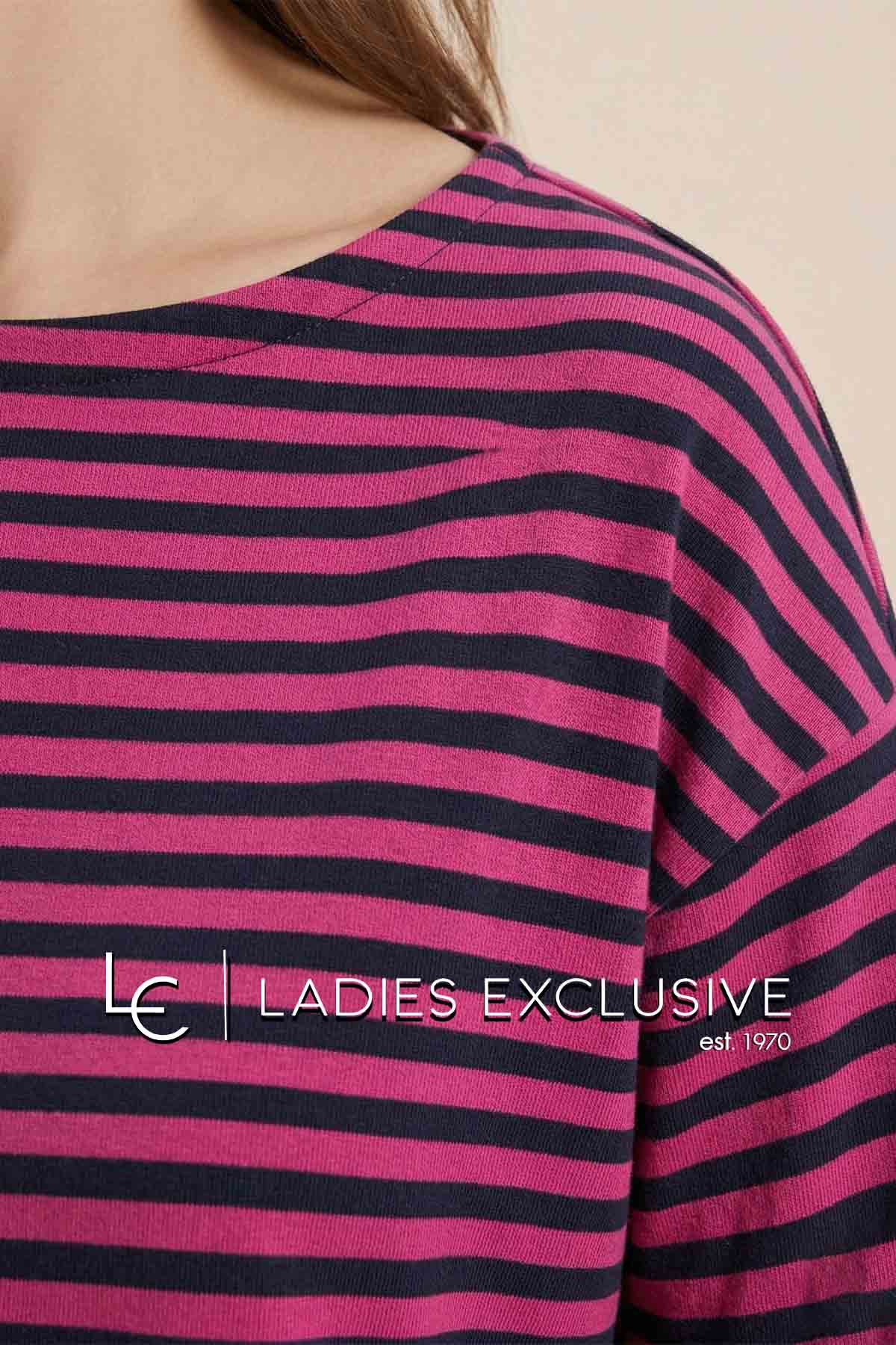 FRANSA Μπλούζα μακρυμάνικη ριγέ φούξια με μπλε, με μεγάλο χαμόγελο.