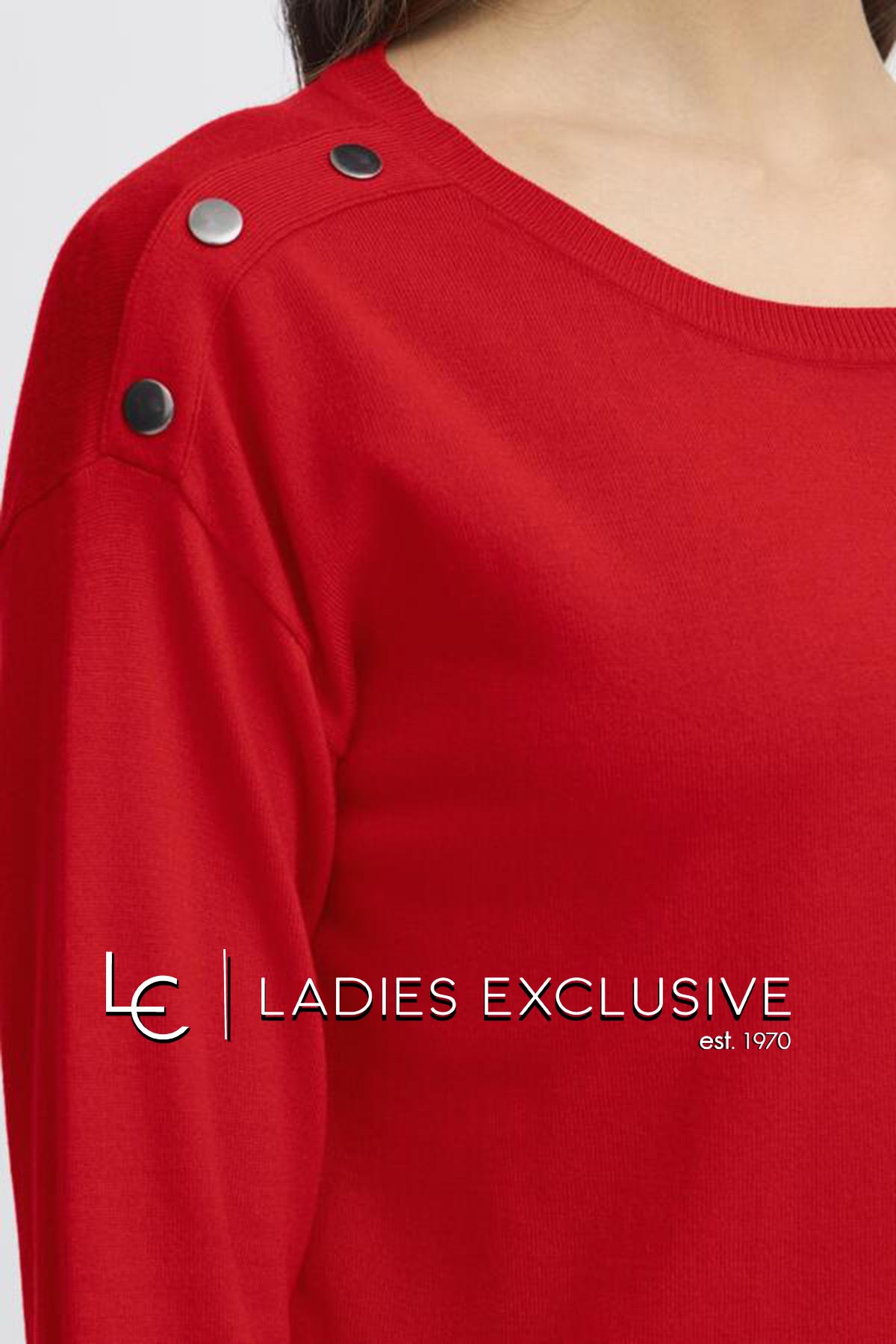 FRANSA Μπλούζα κόκκινη πλεκτή λεπτή από βισκόζη σε άνετη γραμμή, με στρογγυλή λαιμόκοψη και διακοσμητικά τρουκς στους ώμους.