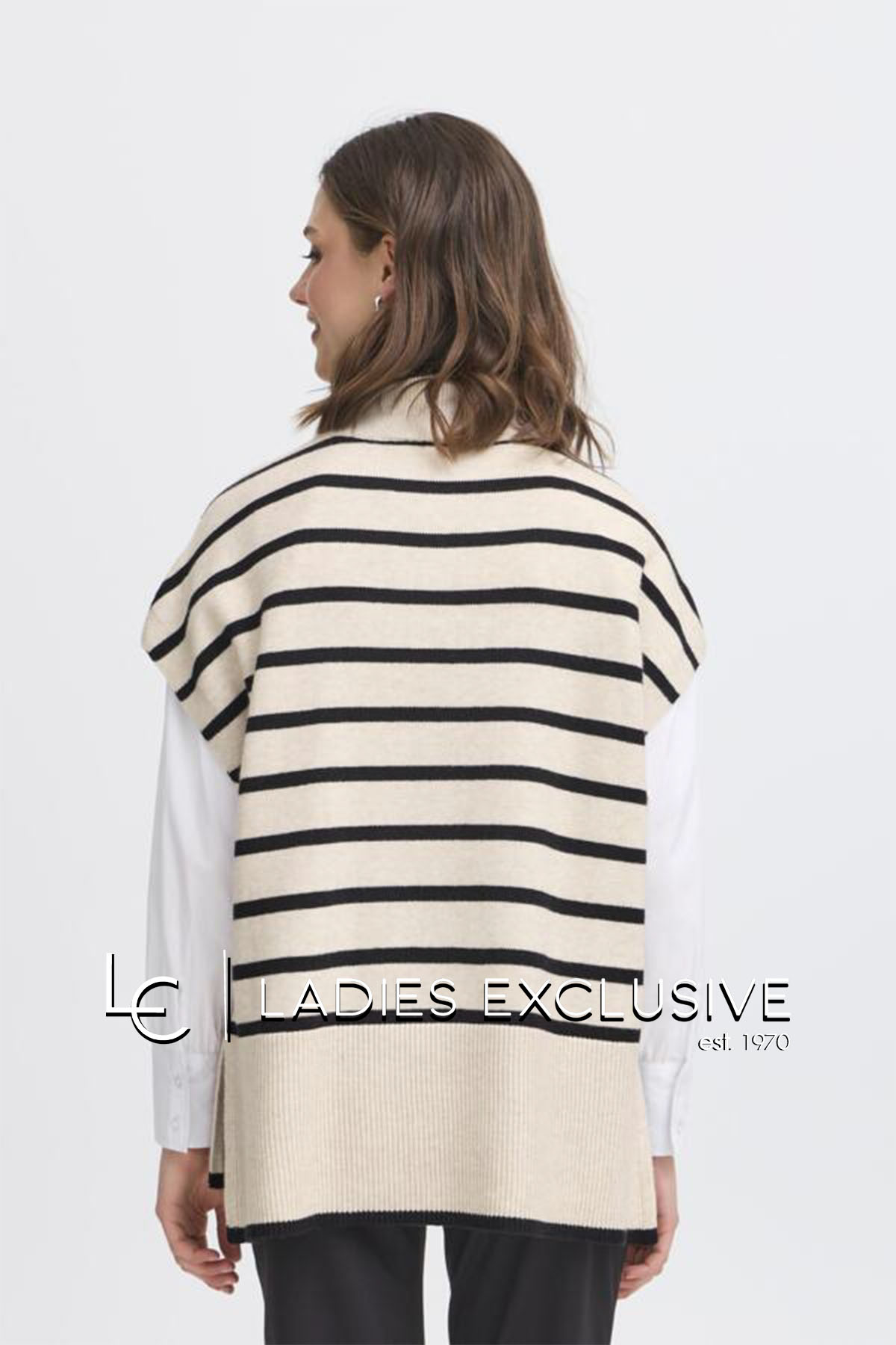FRANSA Πόντσο ασπρόμαυρο ριγέ με όρθιο λαιμό.