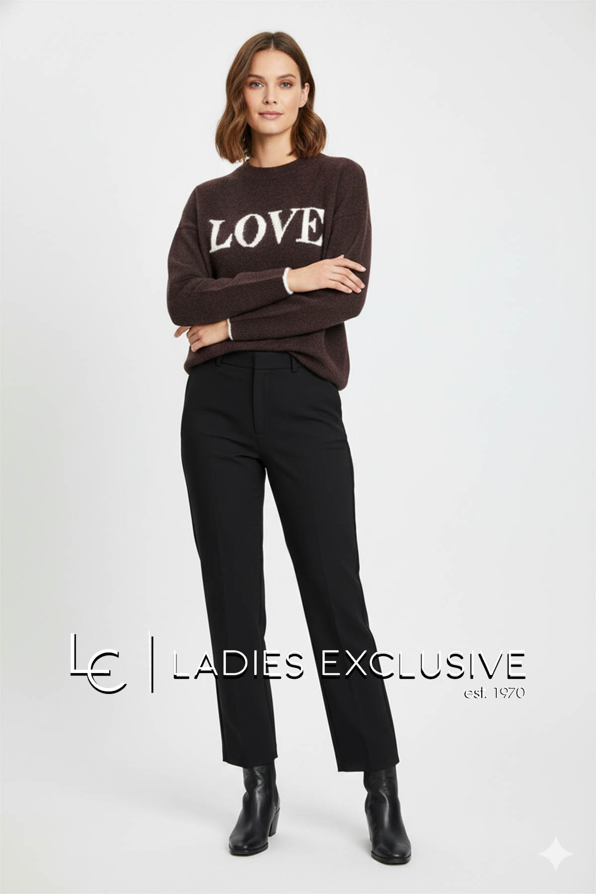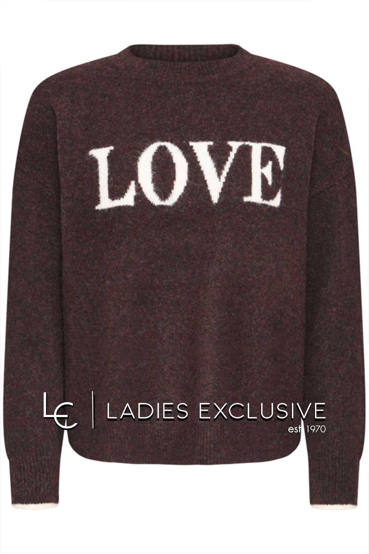 FRANSA Πουλόβερ γκρενά με λογότυπο LOVE και στρογγυλή λαιμόκοψη.