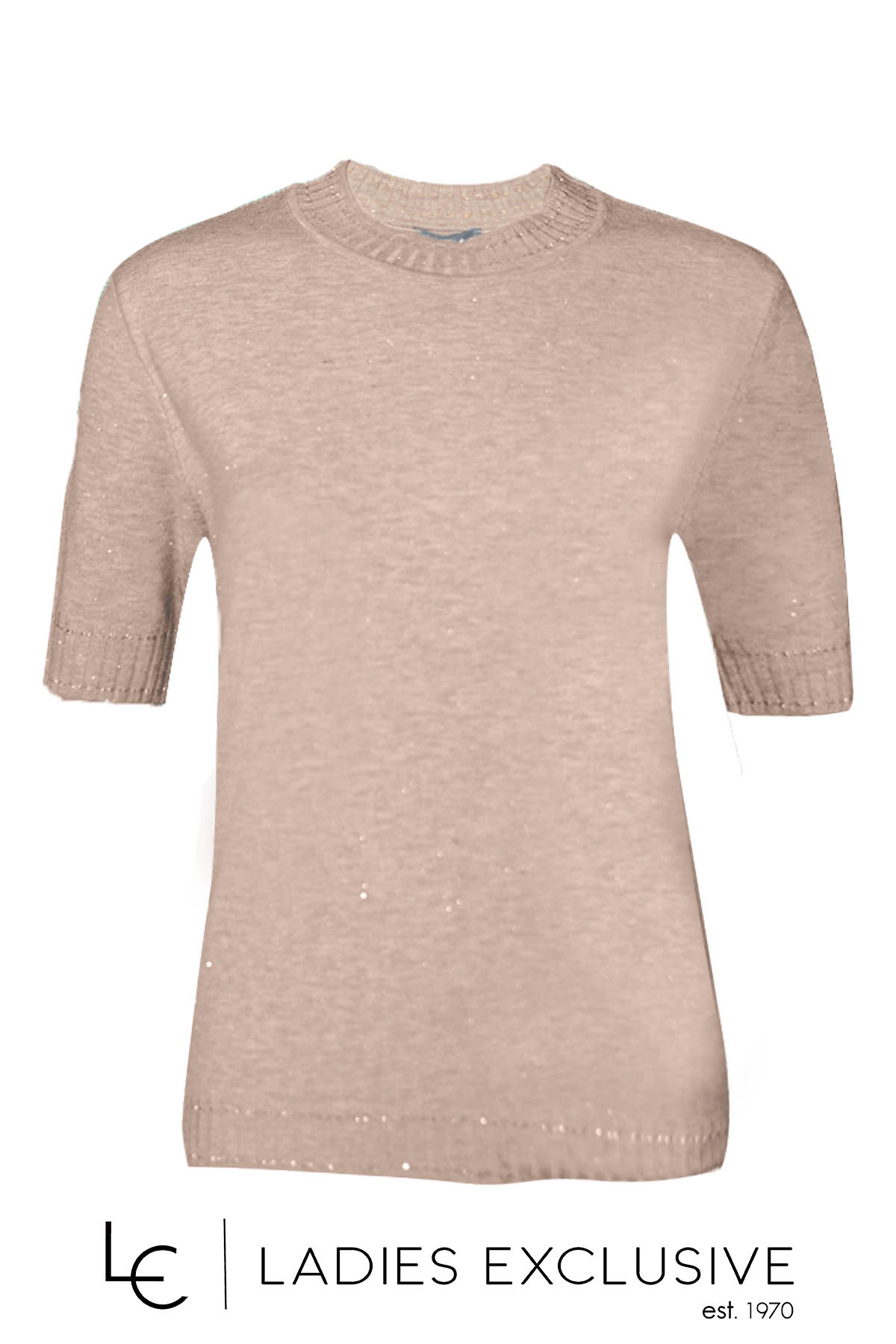 NICOLA Μπλούζα μπεζ κοντομάνικη με ασημοκλωστή.