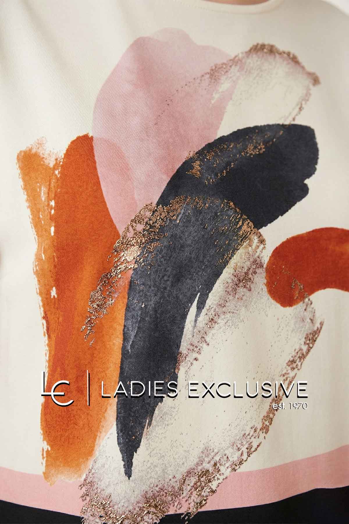 NICOLA Μπλούζα κοντομάνικη εκρού με στάμπα με γήινα χρώματα και μανίκι ρεγκλάν.