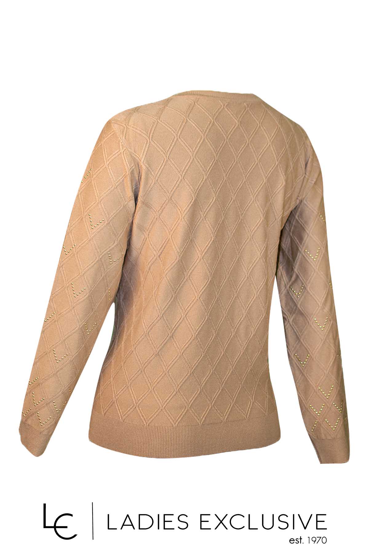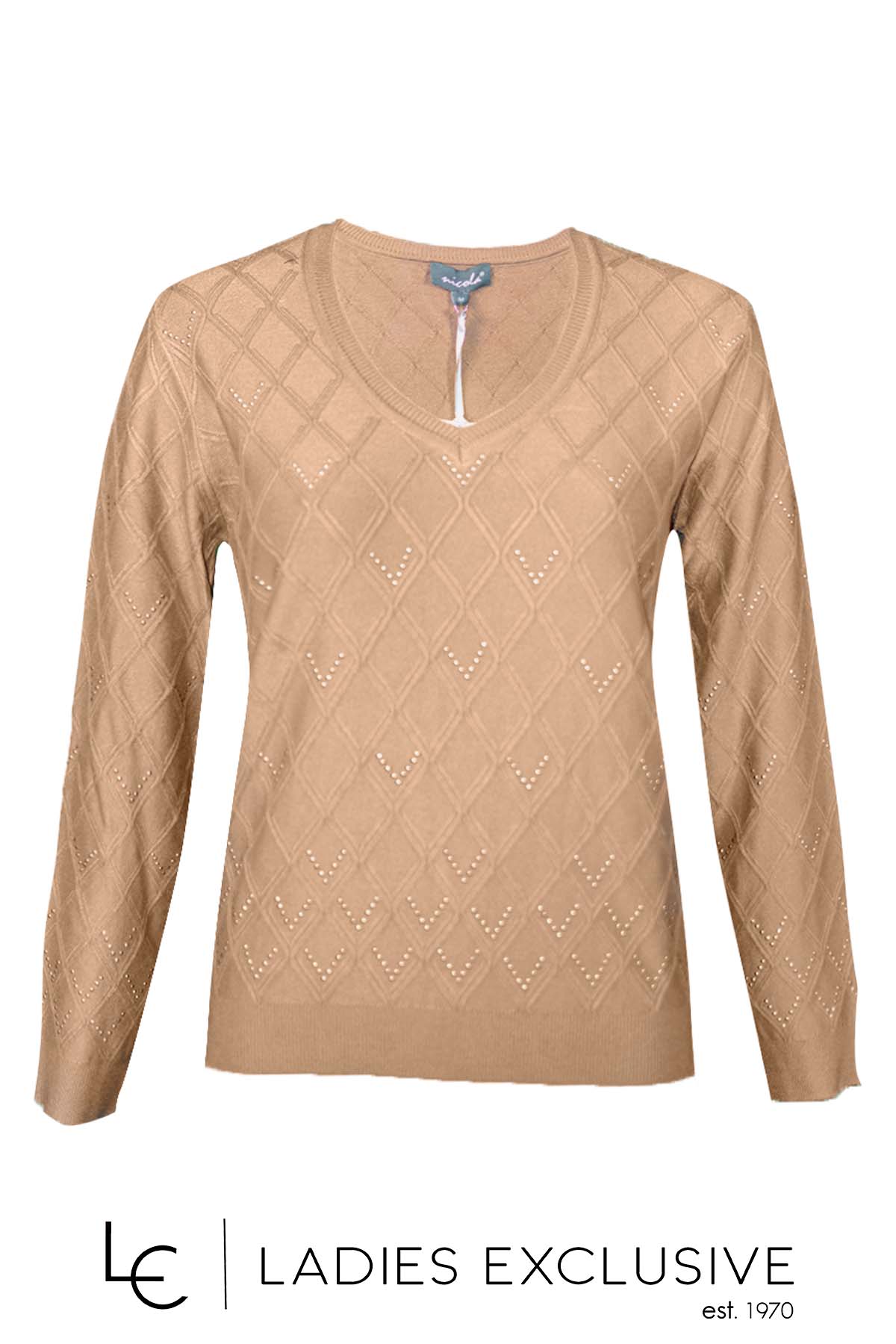 NICOLA Μπλούζα μπεζ με άνοιγμα v και ανάγλυφους ρόμβους με στρας στην ύφανση.