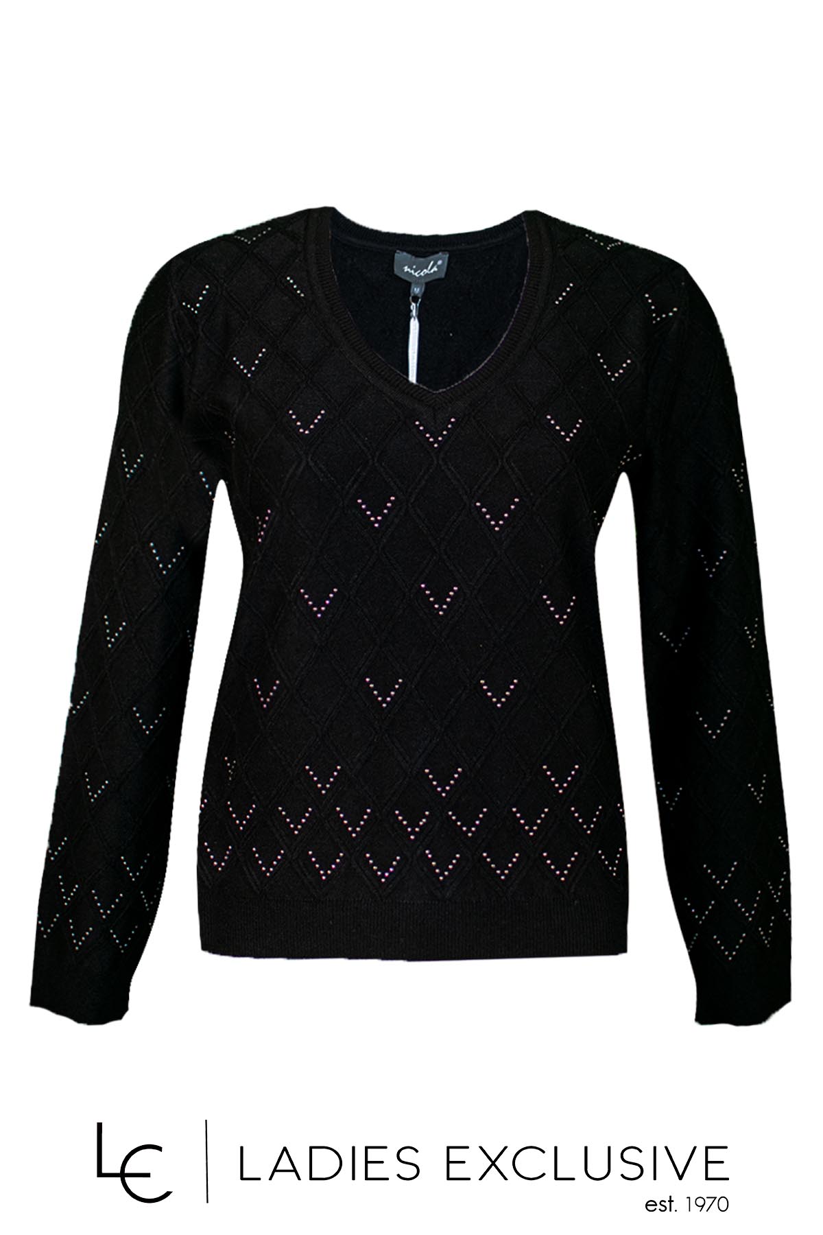 NICOLA Μπλούζα μαύρο με άνοιγμα v και ανάγλυφους ρόμβους με στρας στην ύφανση.