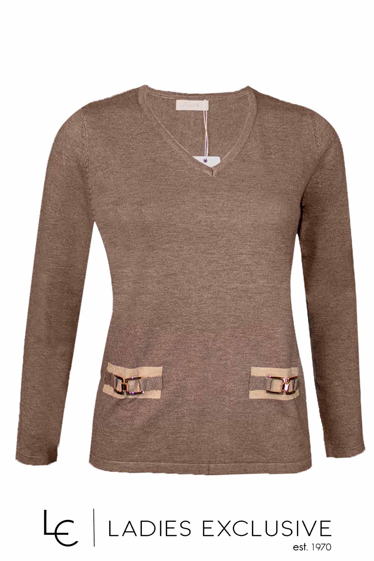 TRIPODE Μπλούζα πούρο πλεκτή με άνοιγμα v και διακοσμητικές αγκράφες.