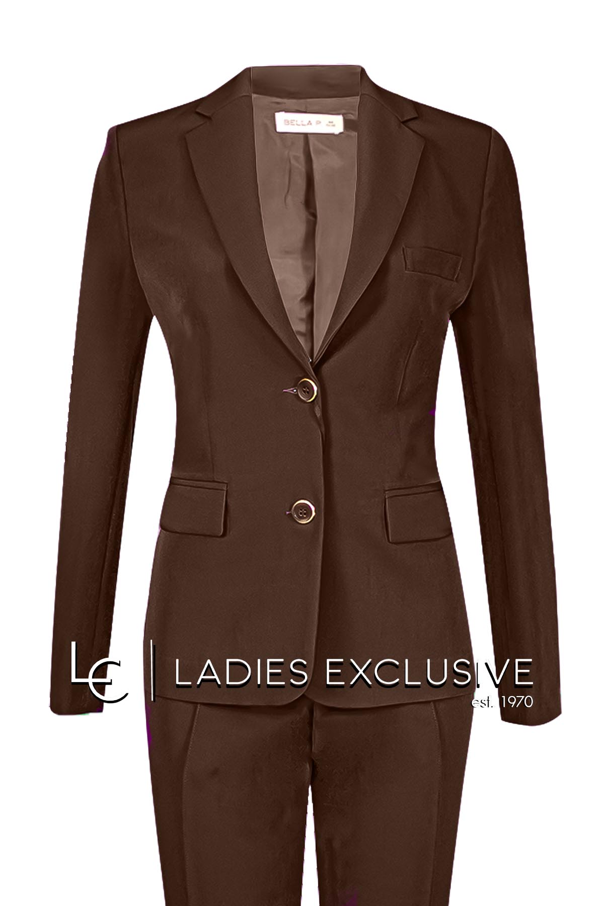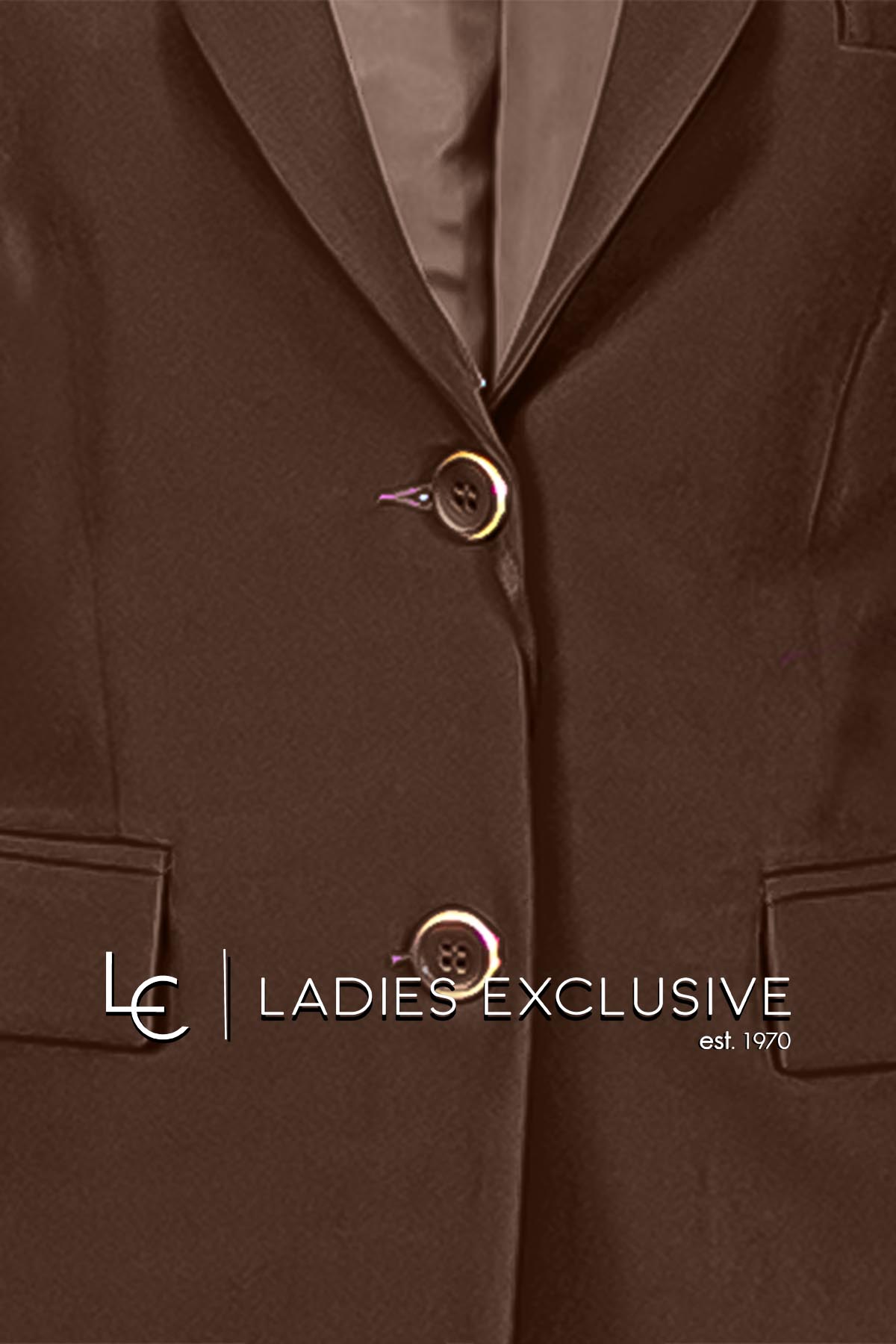 BELLA P. Σακάκι καφέ κρεπ με τσέπες με καπάκια. ΔΙΝΕΤΑΙ ΜΟΝΟ ΣΑΝ ΣΕΤ με το παντελόνι με κωδικό 21252.0121.03115.08.