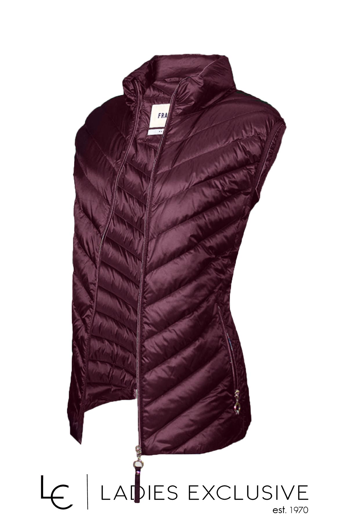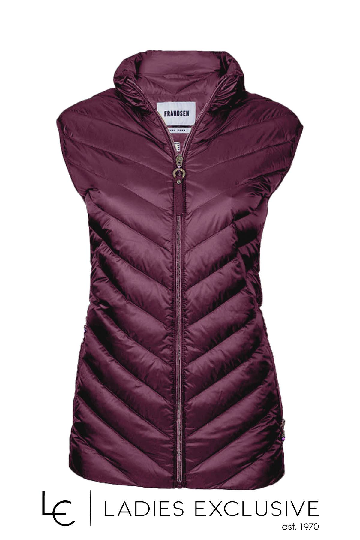 FRANDSEN Μπουφάν δαμασκηνί αμάνικο καπιτονέ, που κλείνει με φερμουάρ.