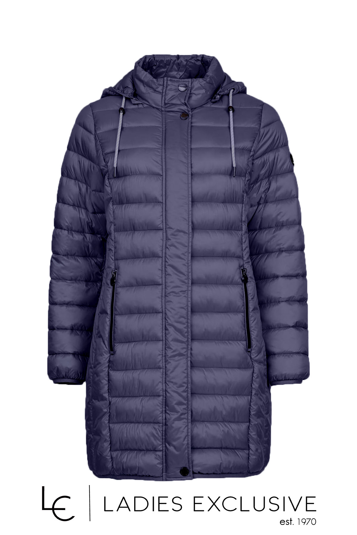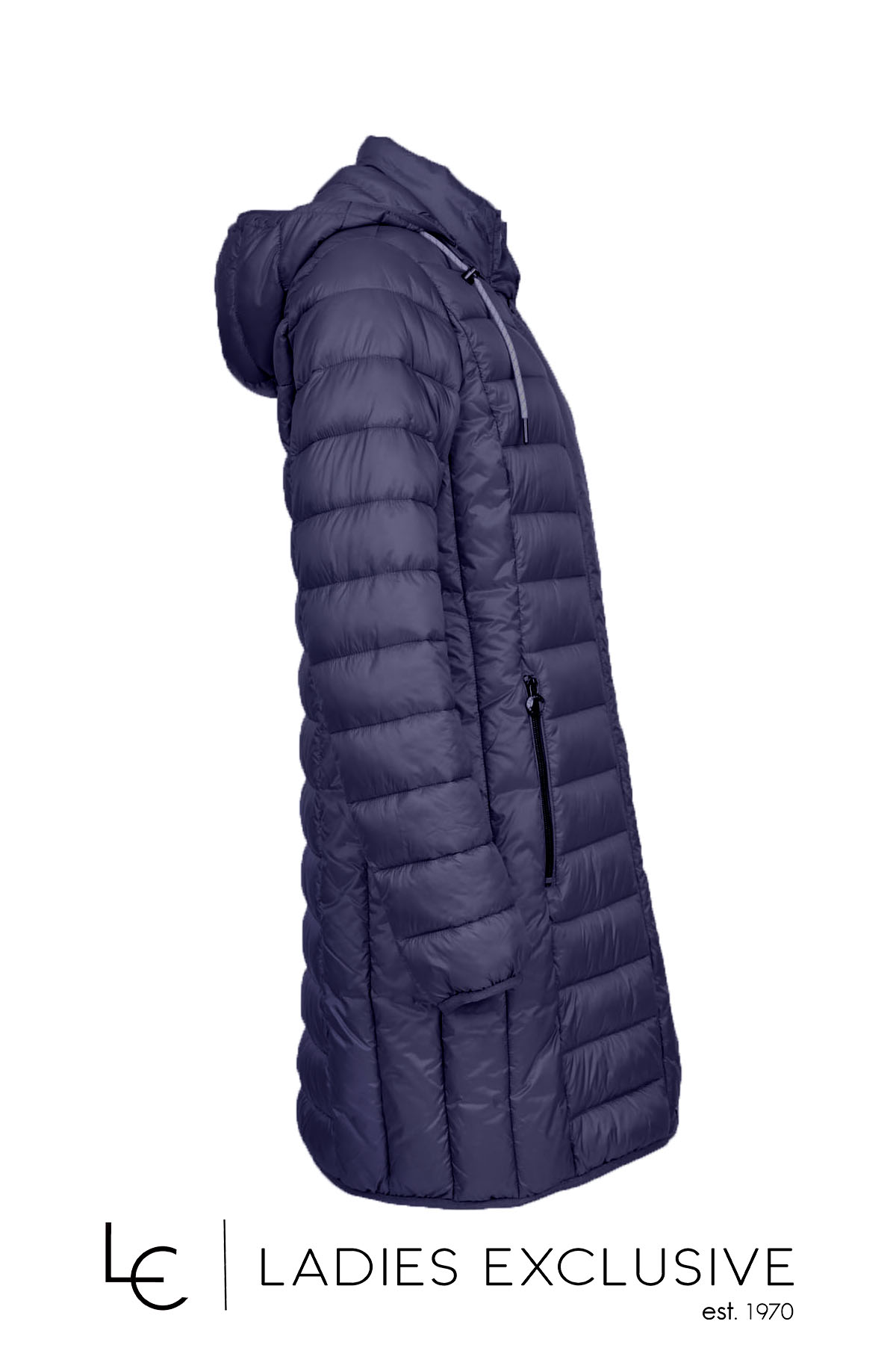 FRANDSEN Μπουφάν μπλε καπιτονέ μακρύ με κουκούλα που αφαιρείται.