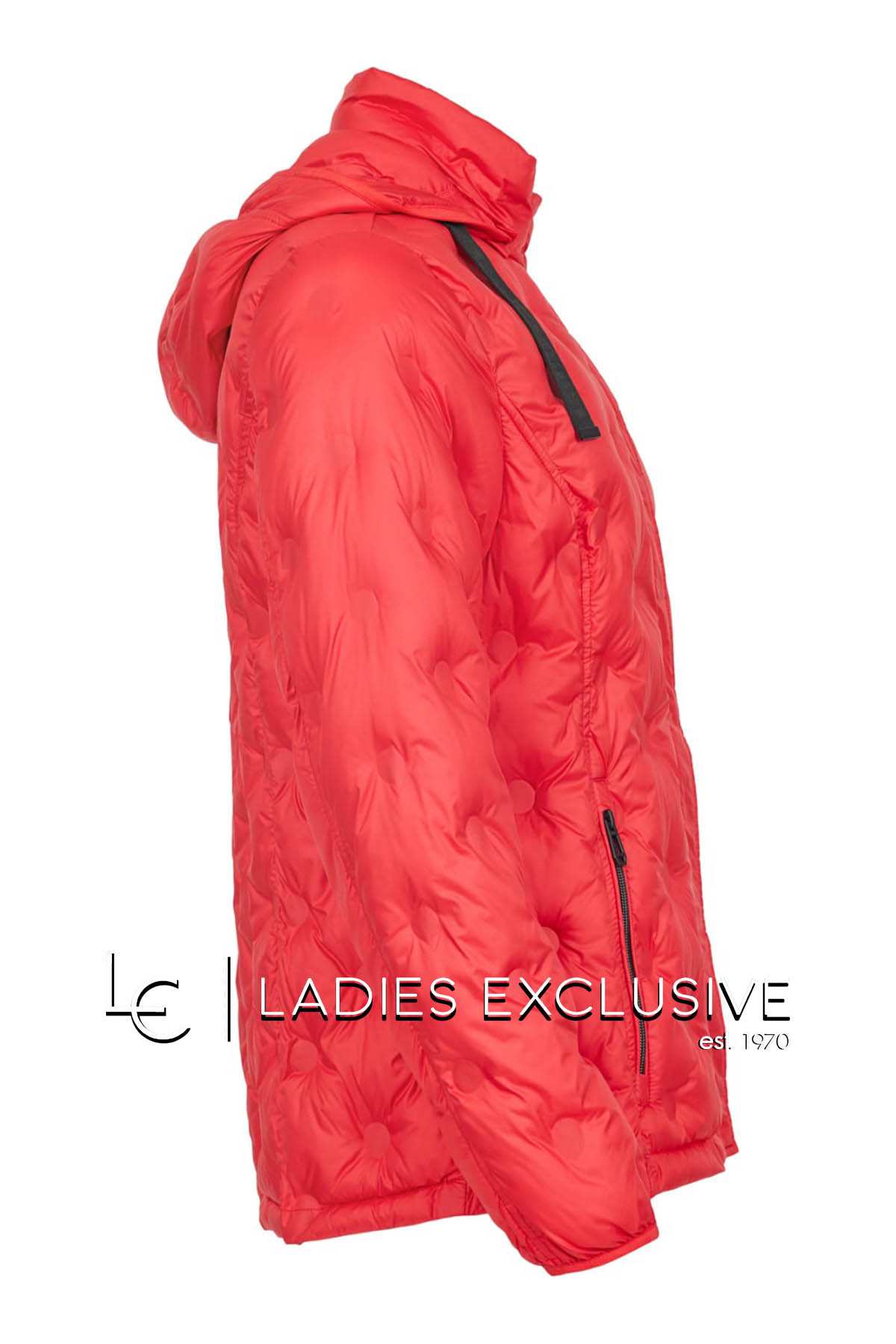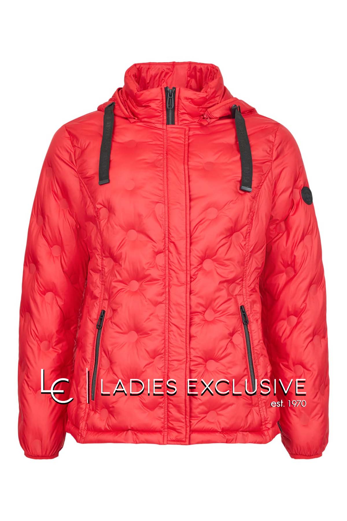 FRANDSEN Μπουφάν κόκκινο καπιτονέ με ανάγλυφα πουά, με κουκούλα που αφαιρείται και τσέπες με φερμουάρ.