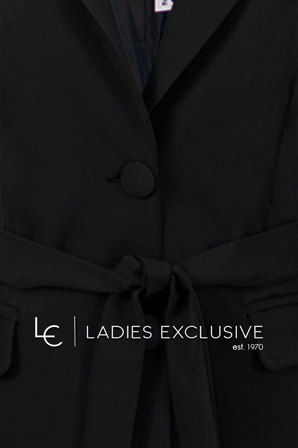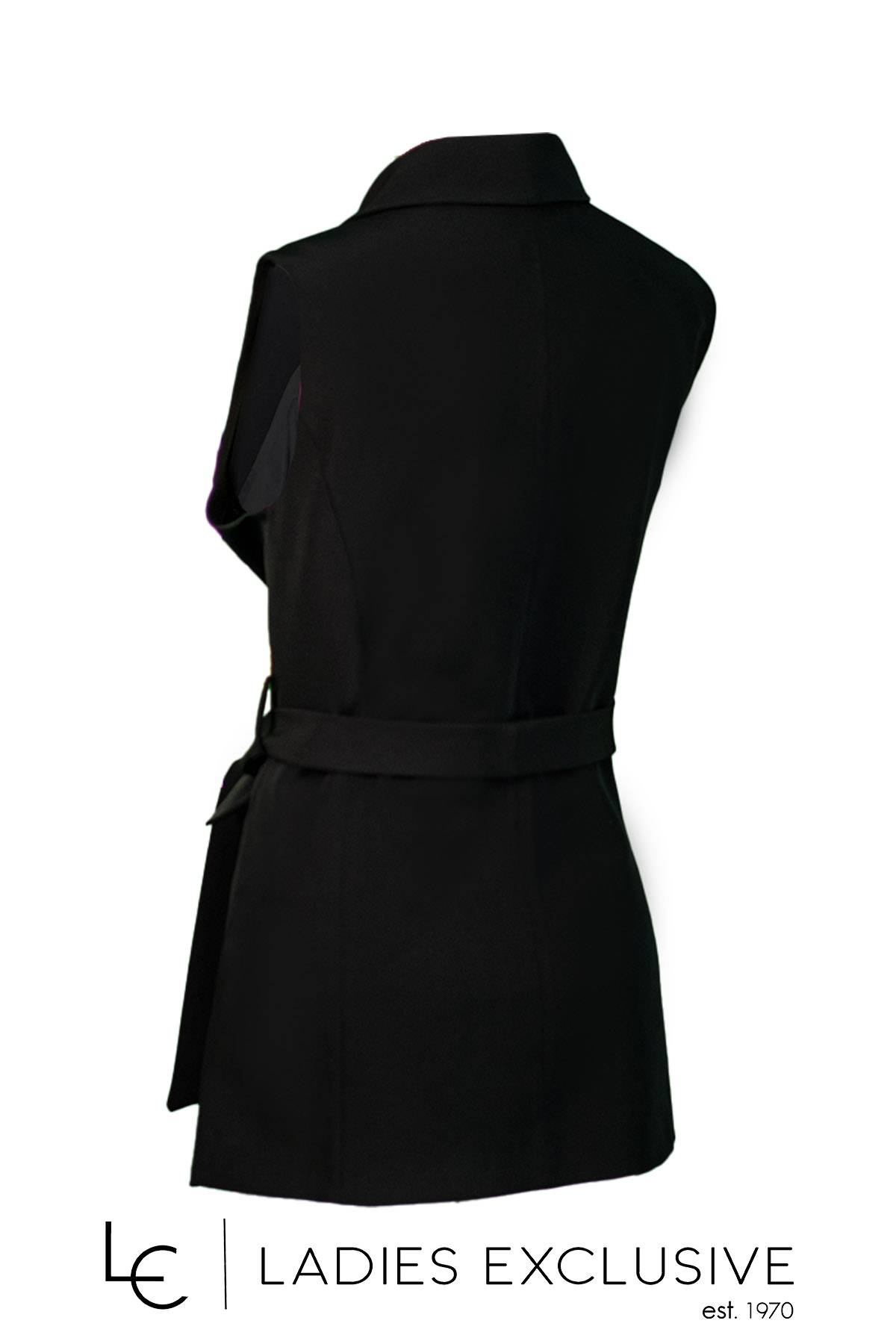 WEFTS Γιλέκο μαύρο κρεπ με ζώνη και μεγάλα ντυμένα από το ίδιο ύφασμα κουμπιά.