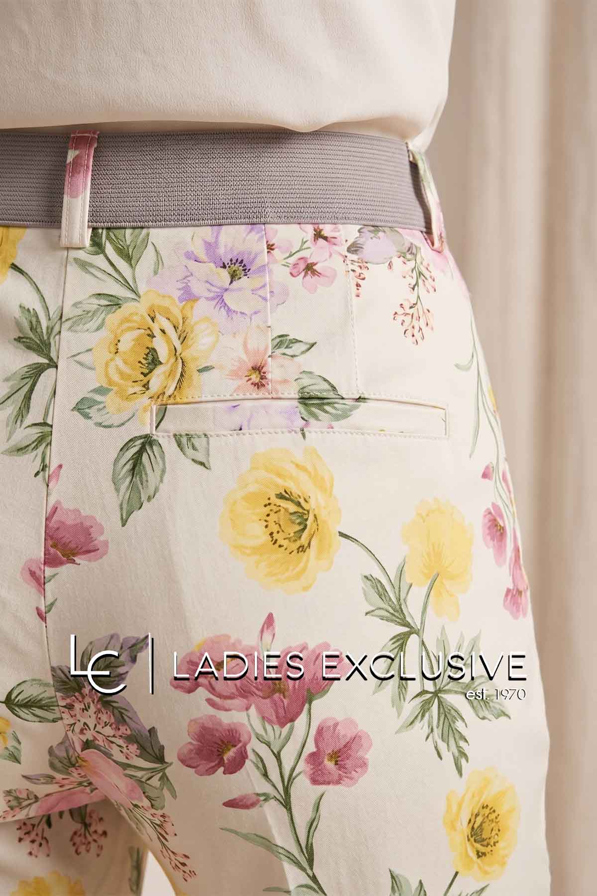 BELLA P. Παντελόνι βαμβακερό αστραγάλου φλοράλ με λάστιχο στη μέση.