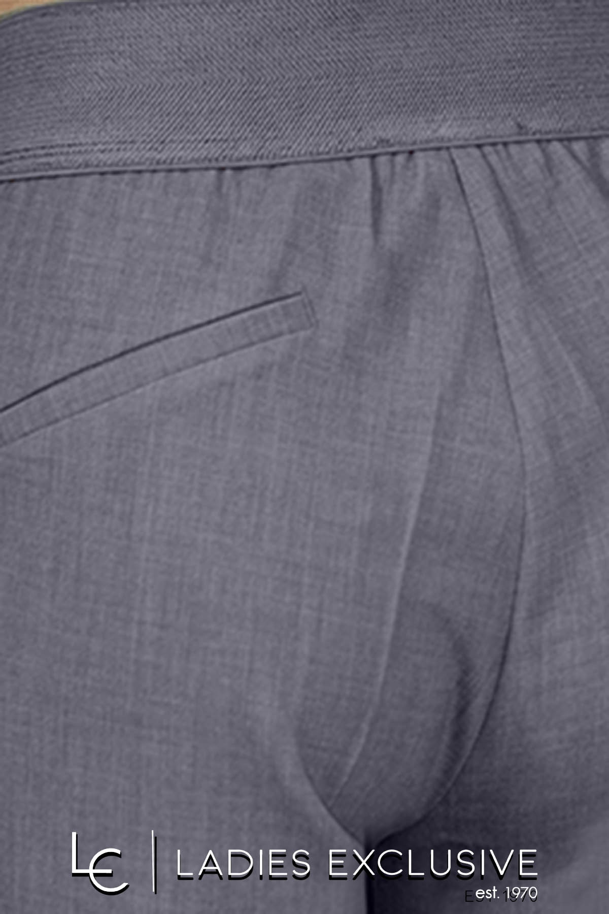BELLA P. Παντελόνι γκρι κρεπ ρεγιόν αστραγάλου με λάστιχο στη μέση και μικρό άνοιγμα στο κάτω μέρος.