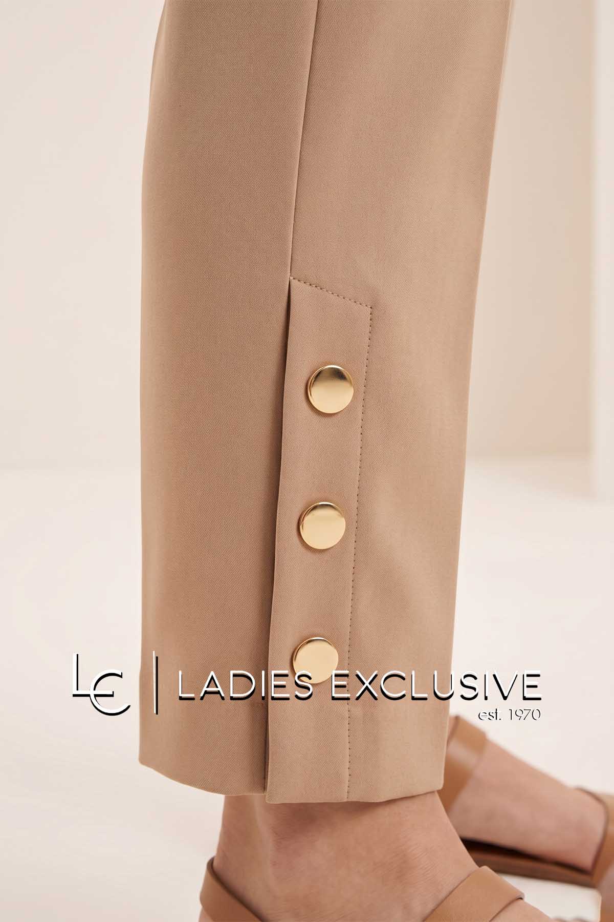 ESTEL Παντελόνι μπεζ βαμβακερό αστραγάλου με κουμπιά στο κάτω μέρος.