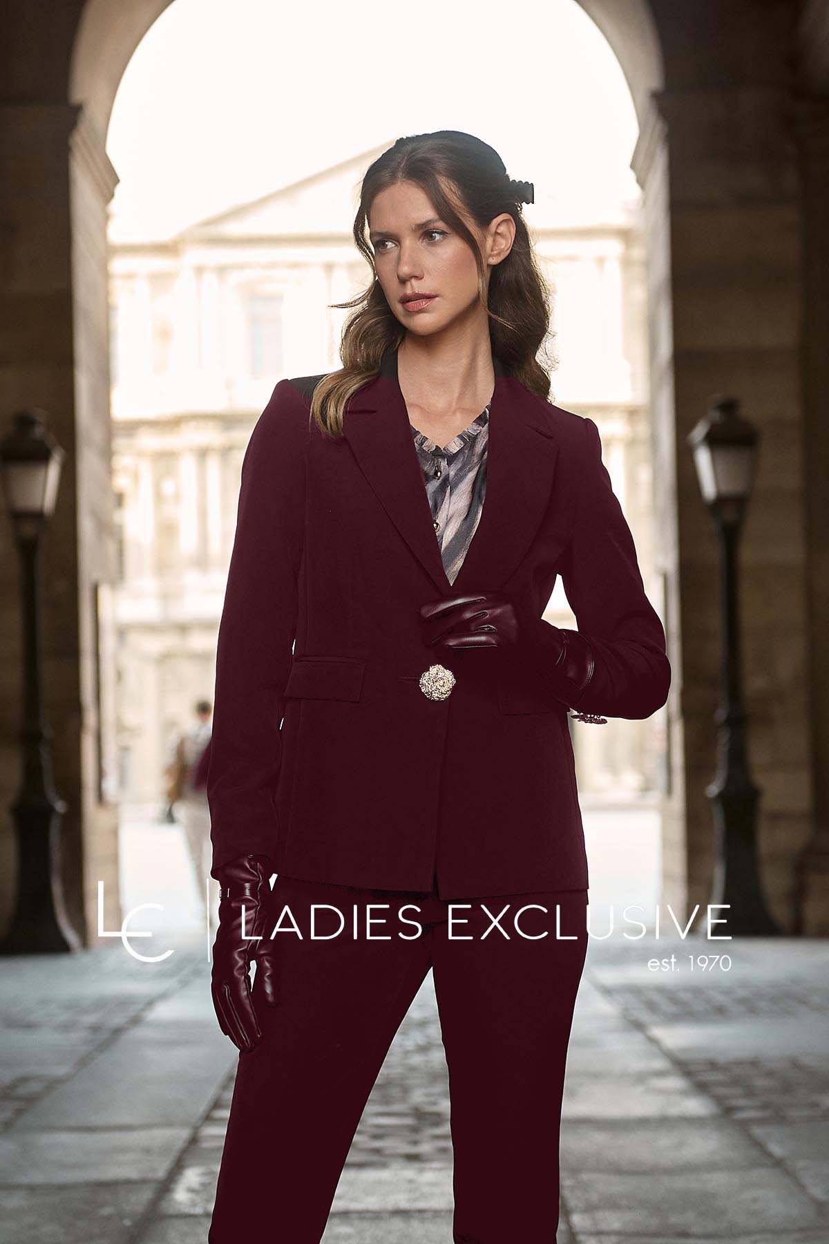 FIBES Παντελόνι μπορντώ κρεπ. ΔΙΝΕΤΑΙ ΜΟΝΟ ΣΑΝ ΣΕΤ με το σακάκι με κωδικό 01-6102.20.