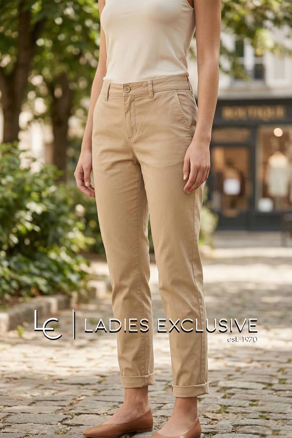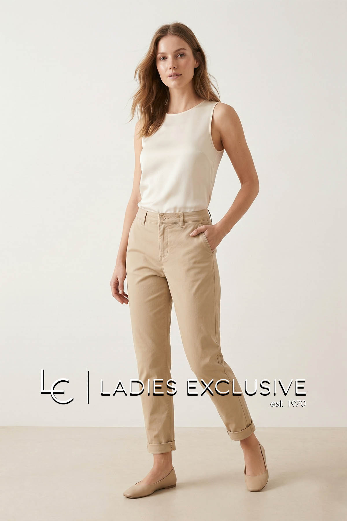 FRANSA Παντελόνι μπεζ βαμβακερό με πλαϊνές τσέπες και ρεβέρ στο κάτω μέρος.