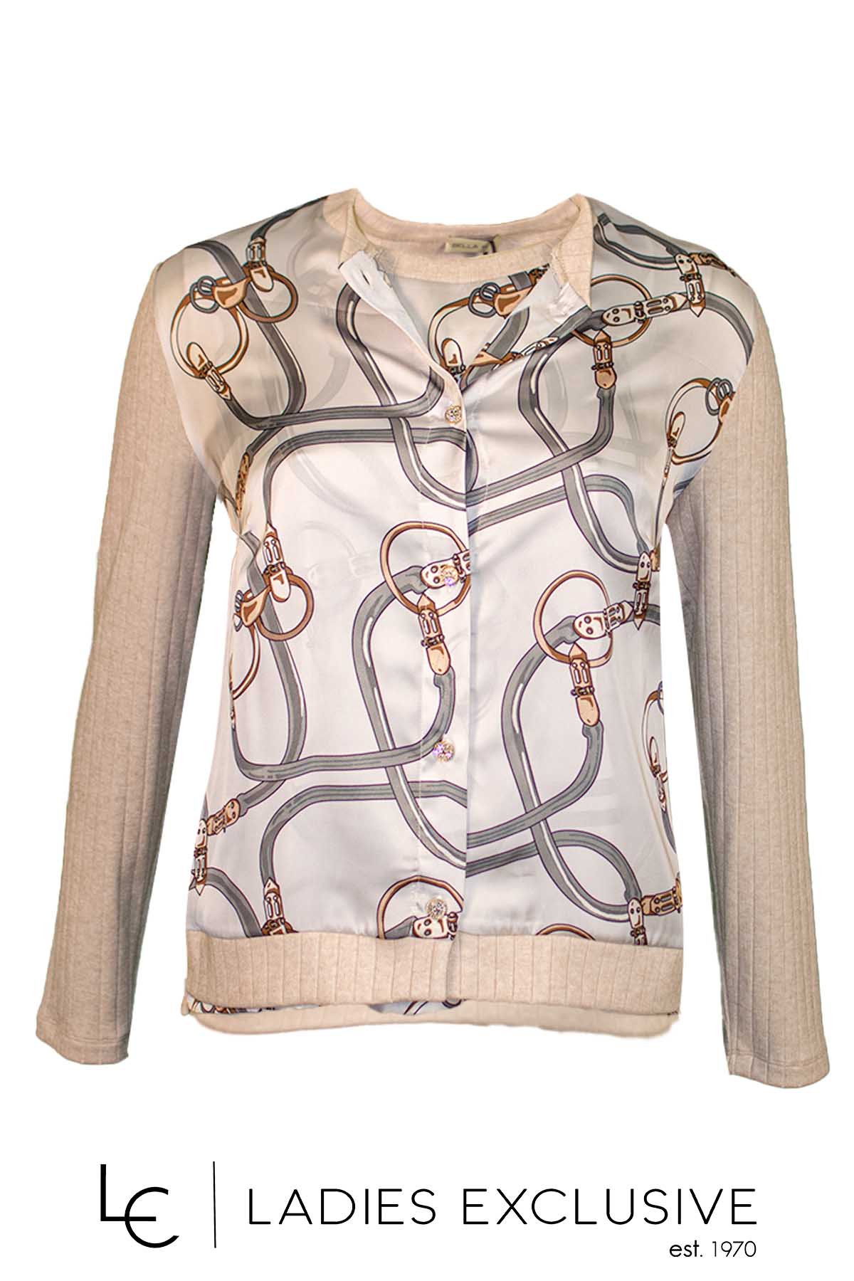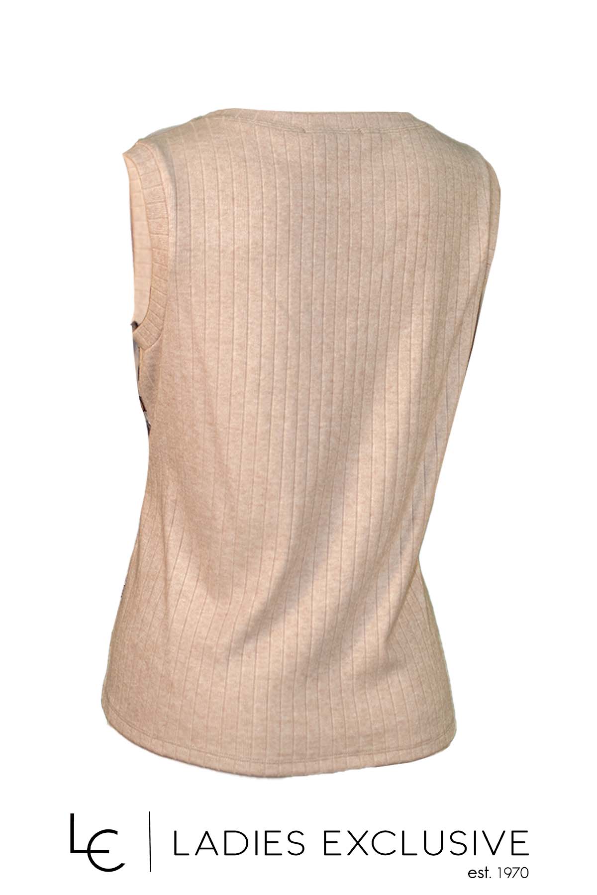 BELLA P. Τουίν σετ σε εκτού αποχρώσεις που αποτελείται από αμάνικη μπλούζα σατέν με πλεκτά τελειώματα και ζακέτα σατέν με πλεκτά μανίκια και πλάτη.