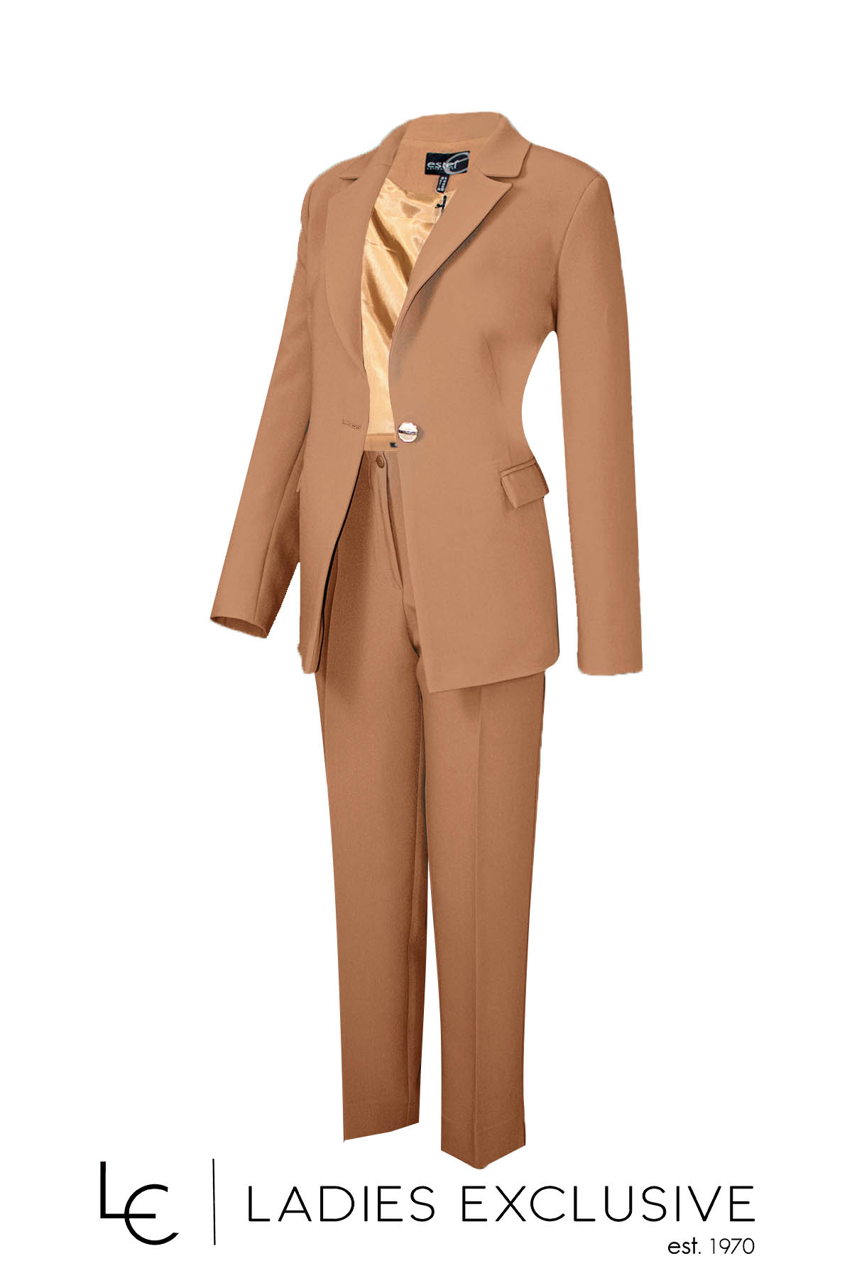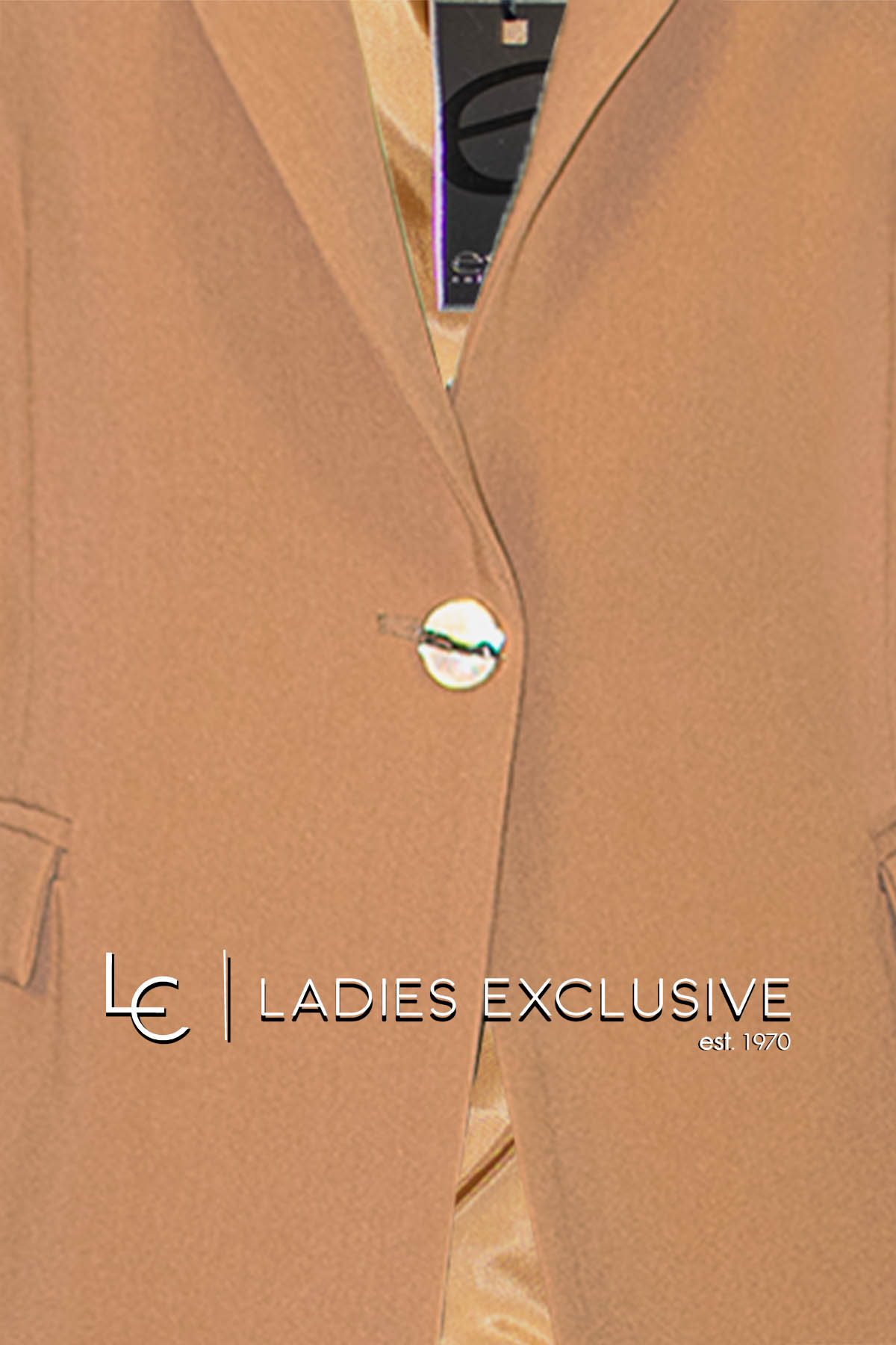 ESTEL Σακάκι καμηλό με πέτο γιακά με μονό κουμπί. Γίνεται σετ με το παντελόνι με κωδικό 08505-00.19.