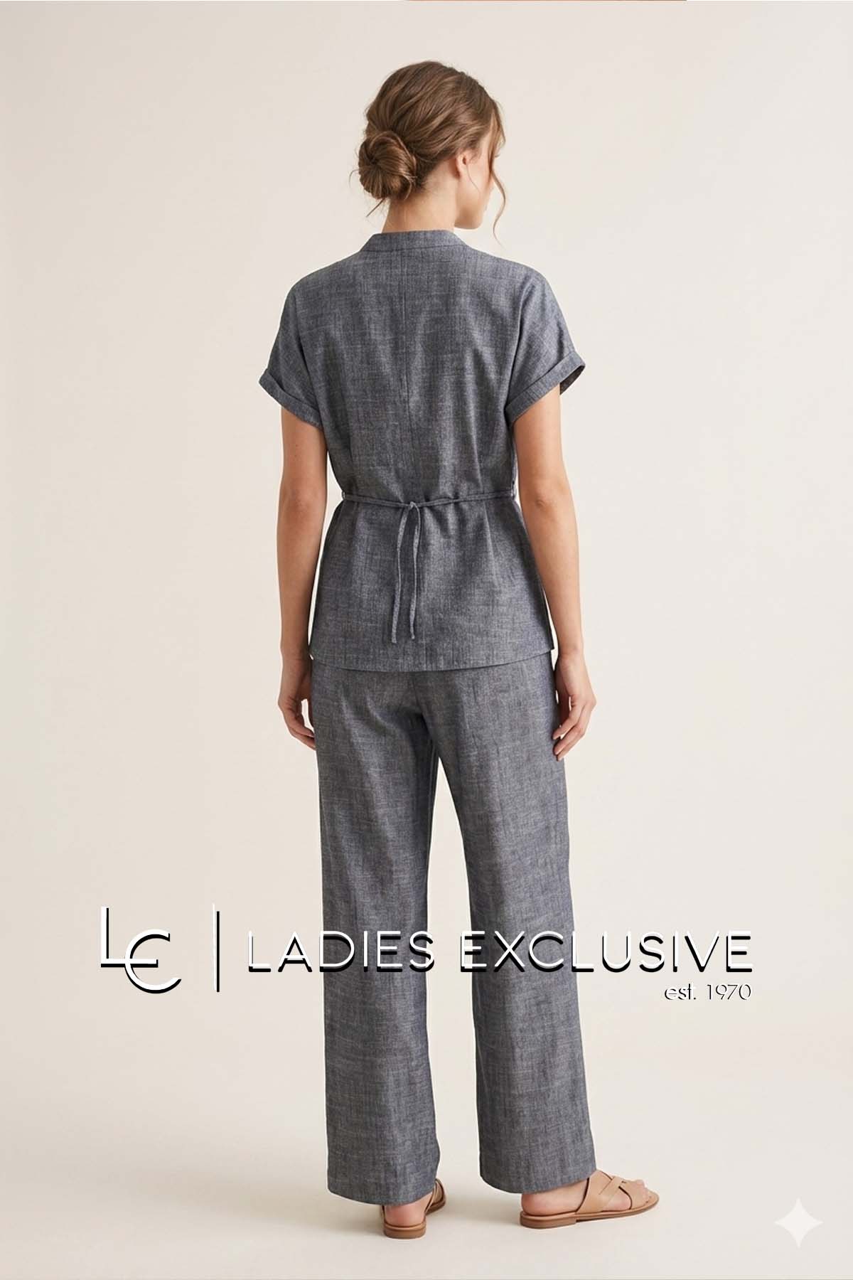FIBES Σετ 2 τεμαχίων, που αποτελείται από μπλε μπλούζα κοντομάνικη με λεπτό ζωνάκι και μπλε παντελόνα με λάστιχο στη μέση.