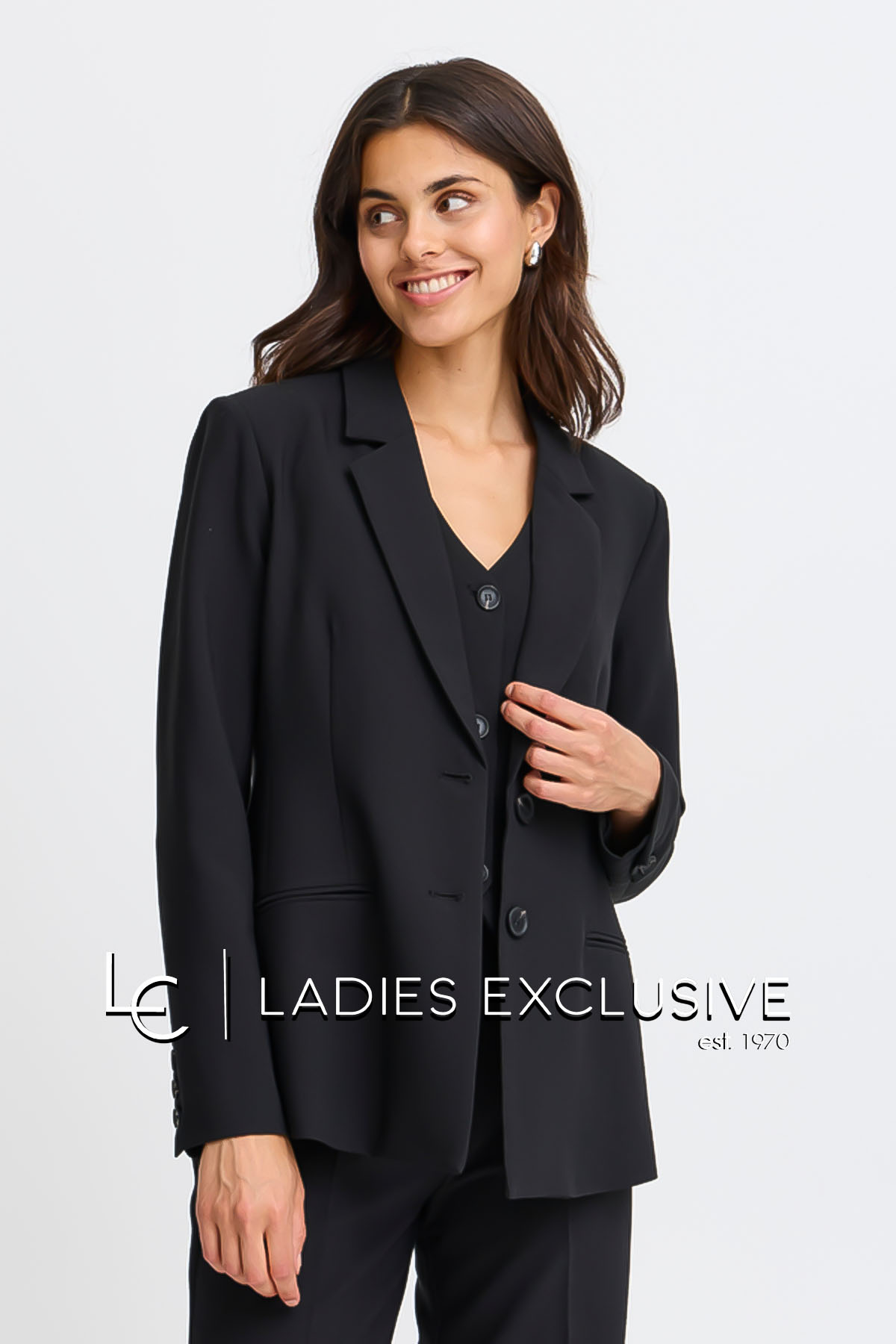 FRANSA Σακάκι μαύρο από βισκόζη με εξωτερικές τσέπες. Γίνεται σετ με το παντελόνι με κωδικό 20615348.01.