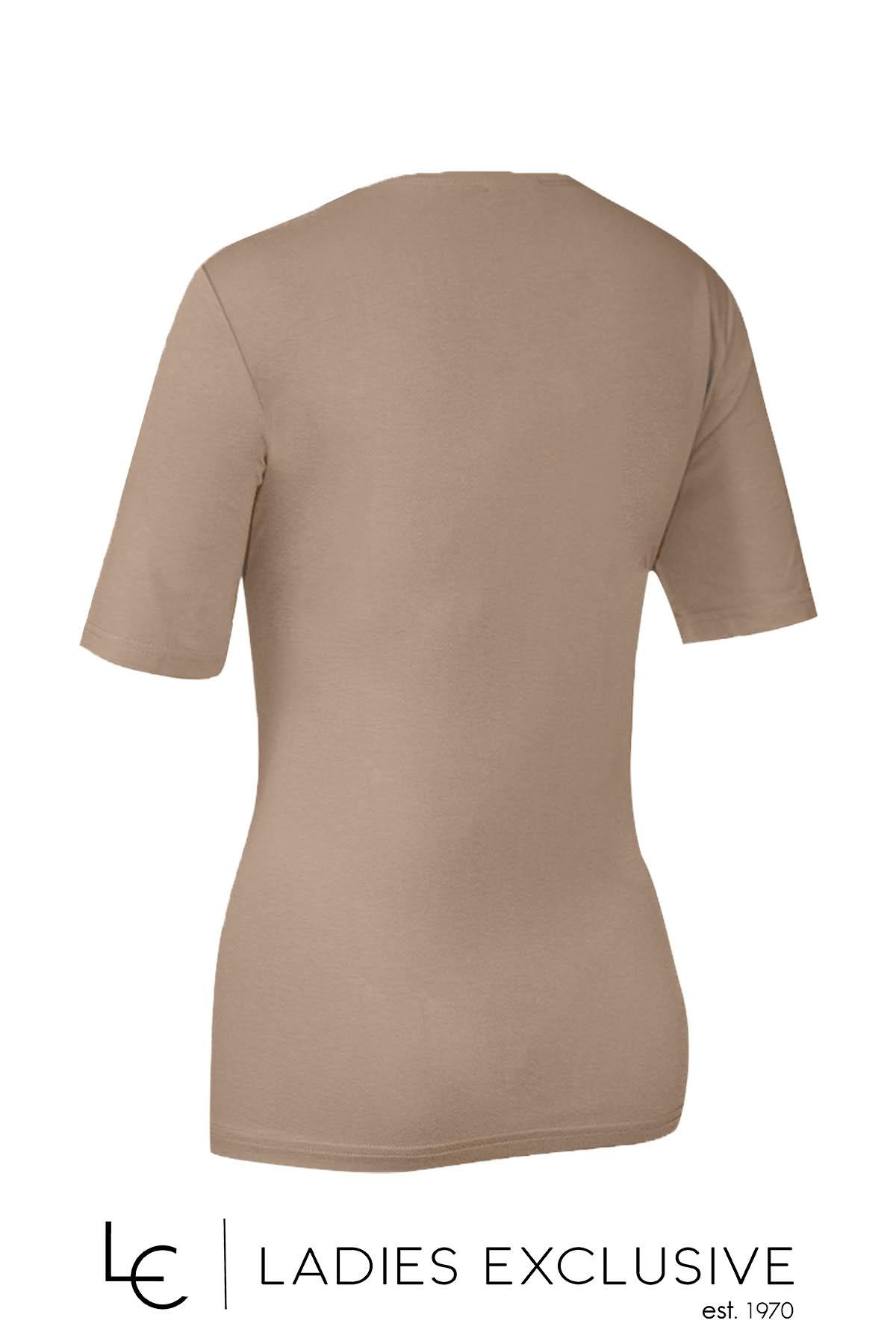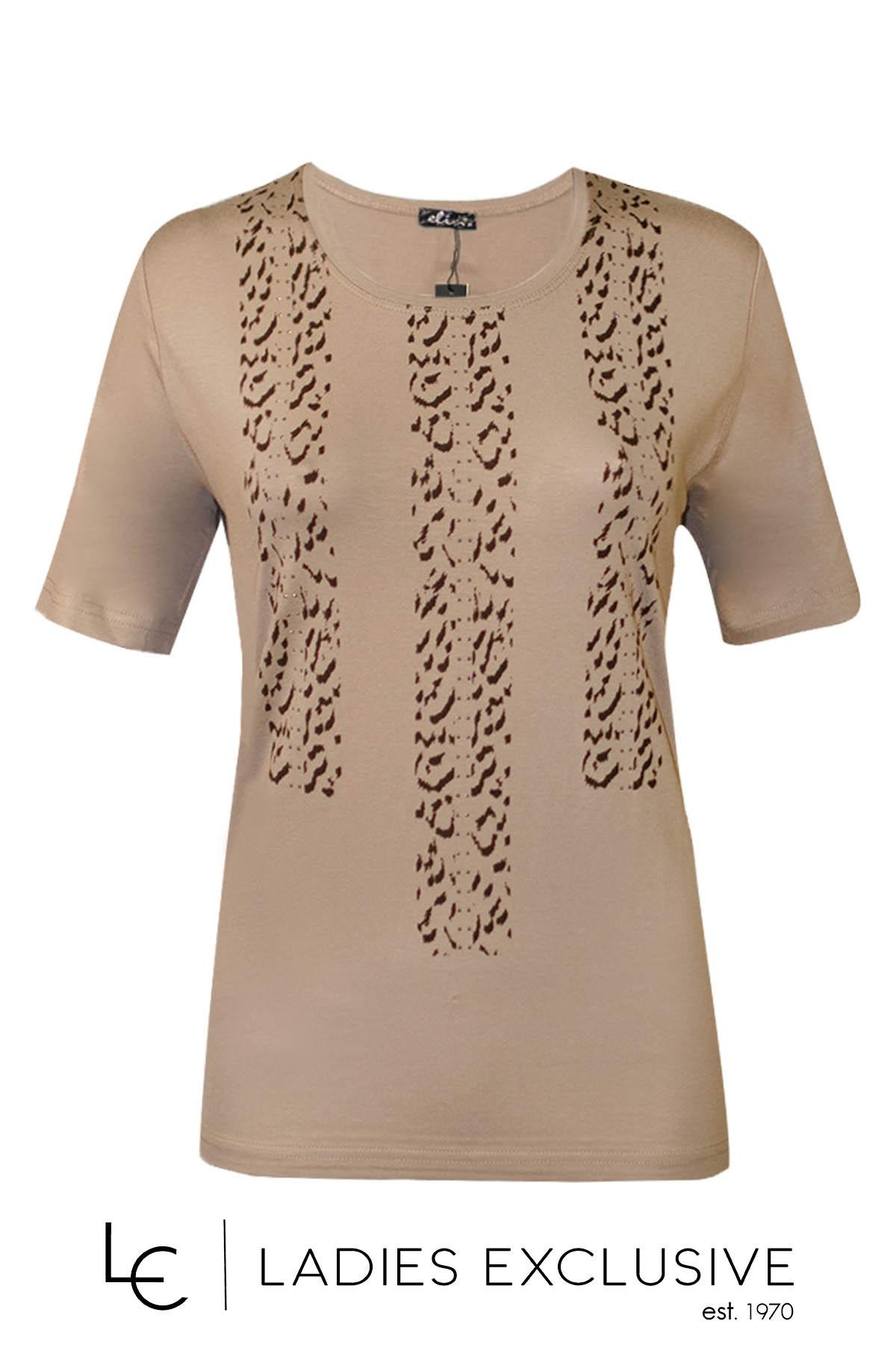 ELIN Μπλούζα μπεζ κοντομάνικη με στάμπα και στρας.