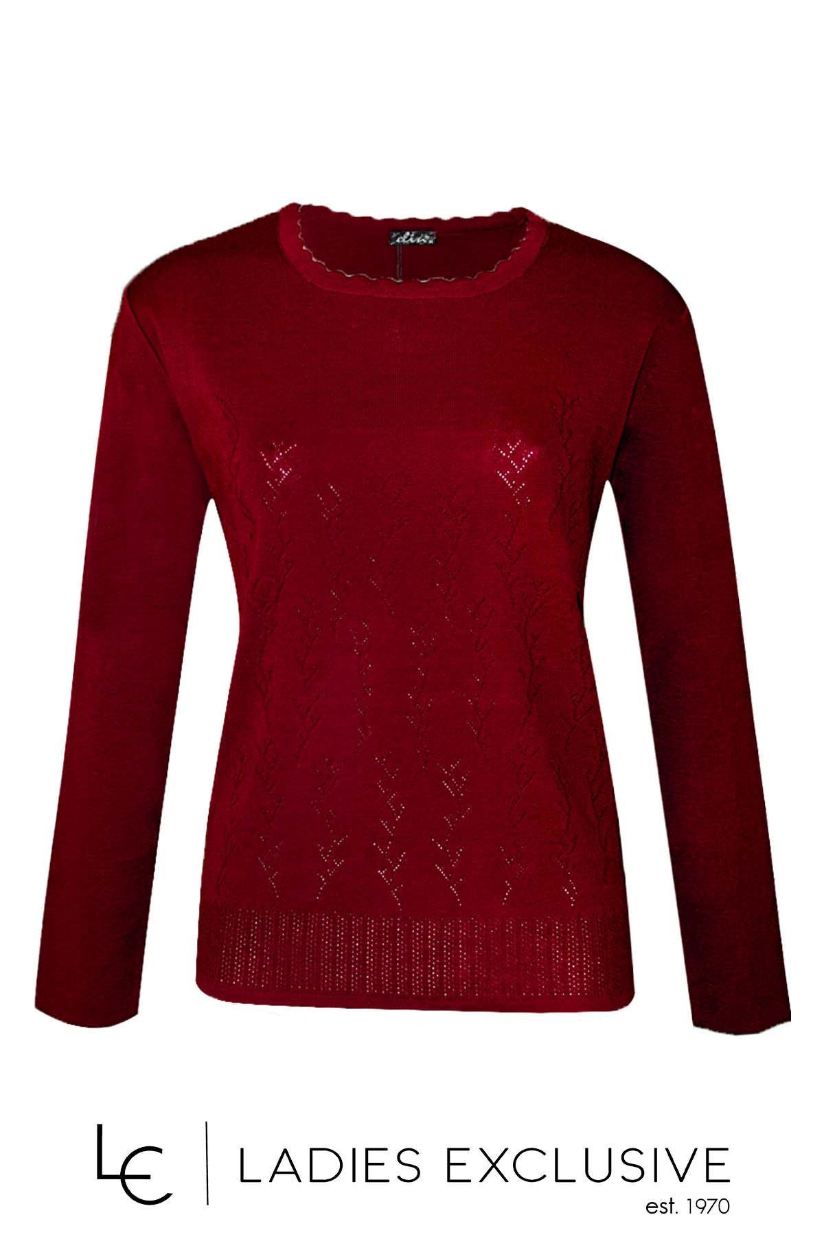 ELIN Μπλούζα μπορντώ μάλλινη με ανάγλυφα κλαδιά και ιδιαίτερο σχέδιο στη λαιμόκοψη.